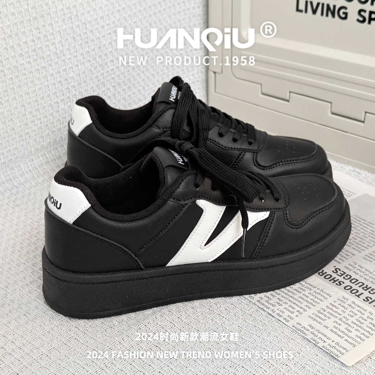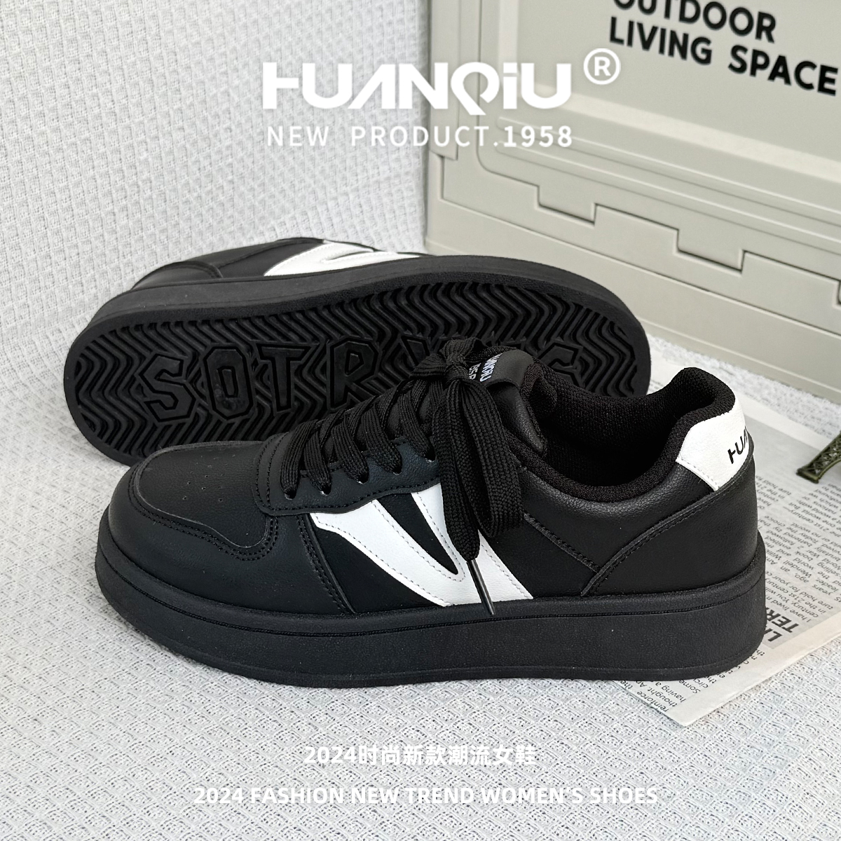 环球百搭女鞋新款厚底增高爆款小黑鞋休闲校园时尚潮流运动板鞋女