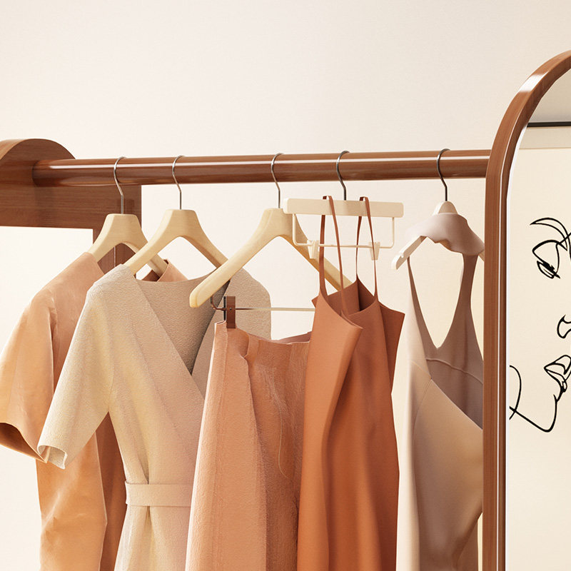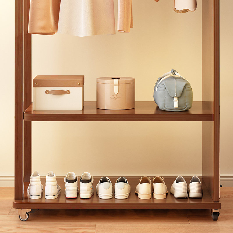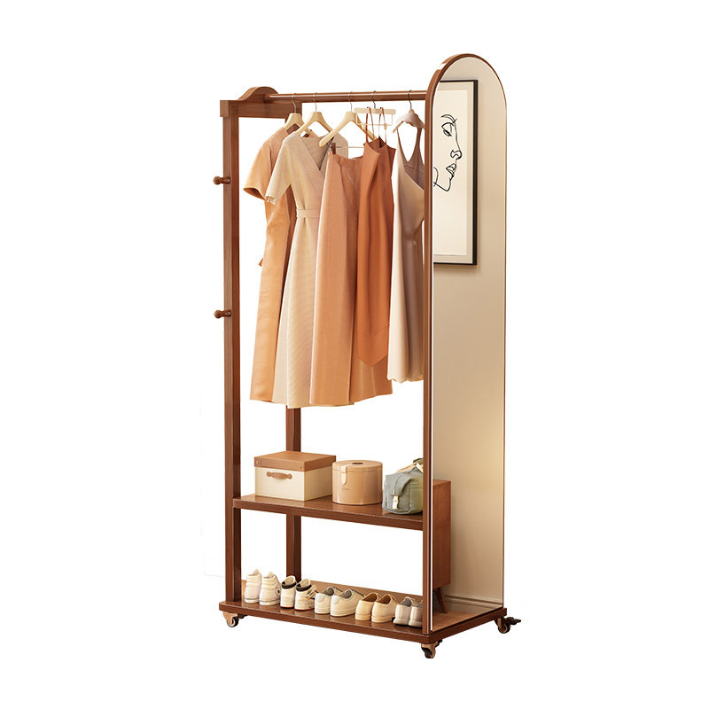 实木衣帽架落地挂衣架穿衣镜一体镜可移动收纳架子简易家用全身镜