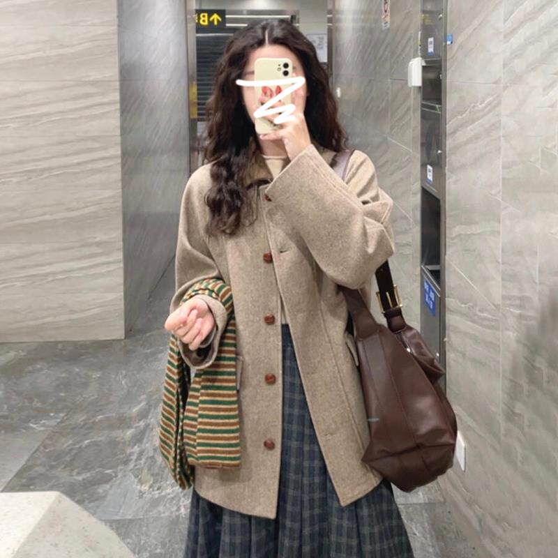 高级感韩系毛呢短款大衣女秋冬2025新款春季超好看加厚外套小个子