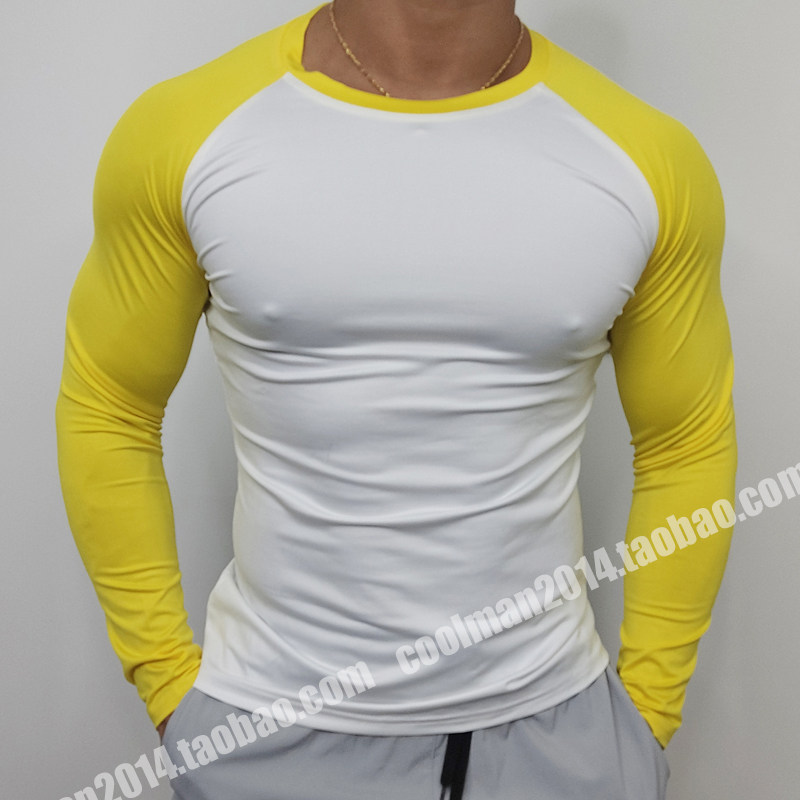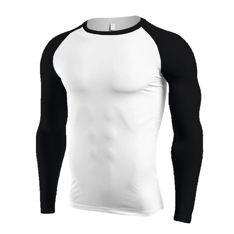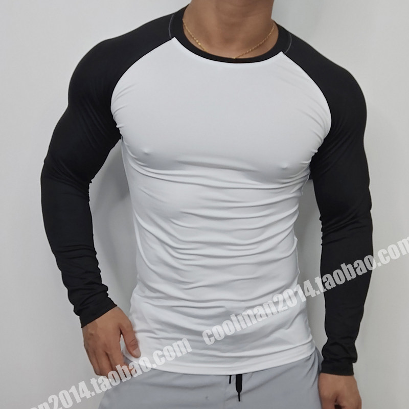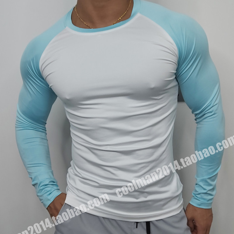 春秋拼色插肩袖男士健身长袖速干撸铁高弹紧身衣T恤跑步运动打底