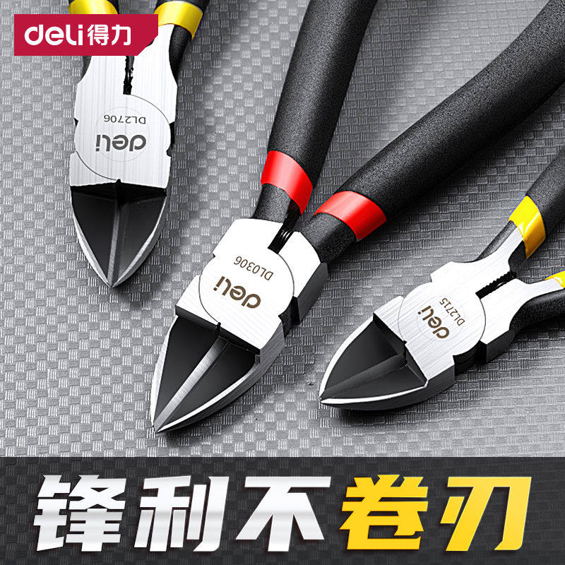 得力水口钳子剪钳斜口钳电工专用工业级超高硬度偏口钳模型斜
