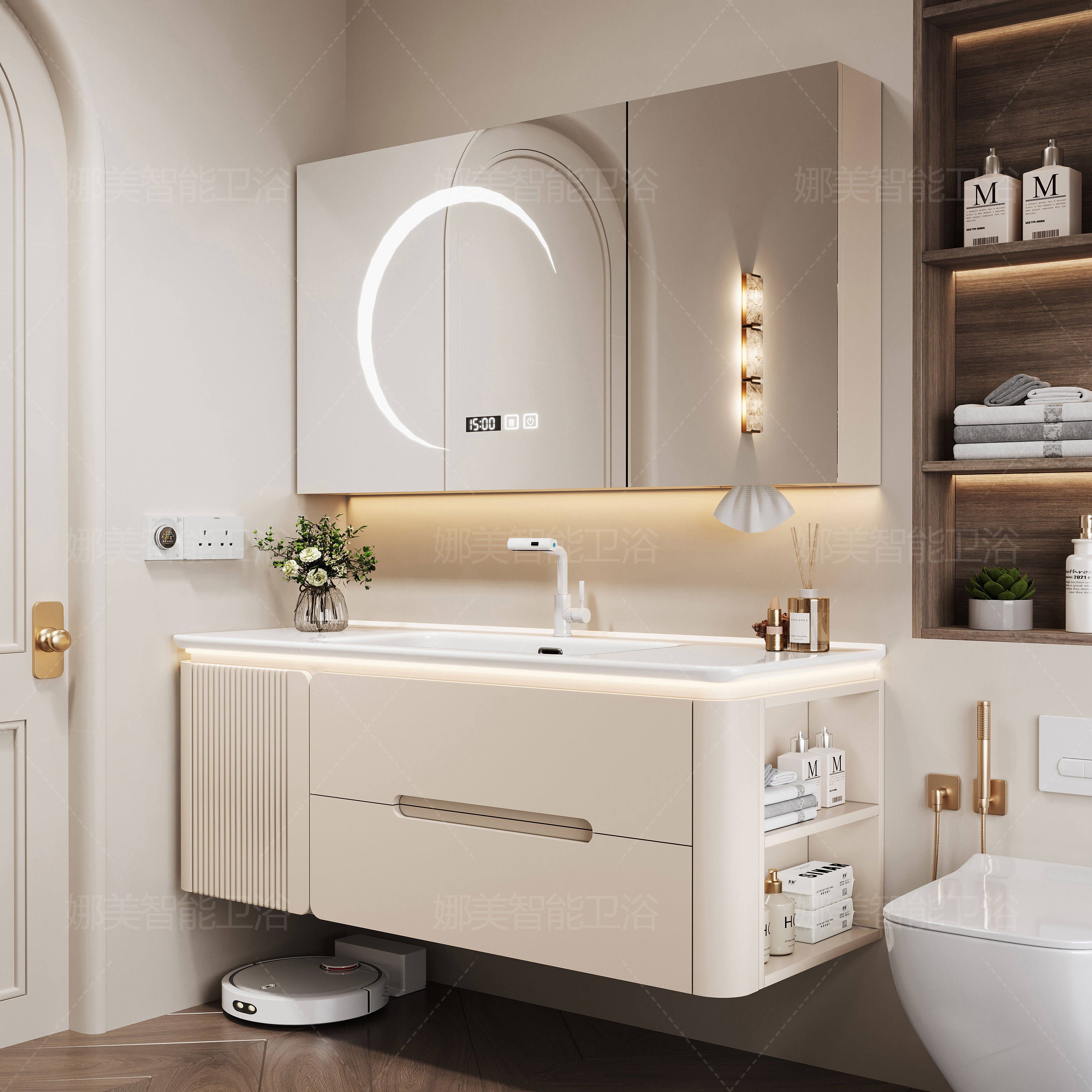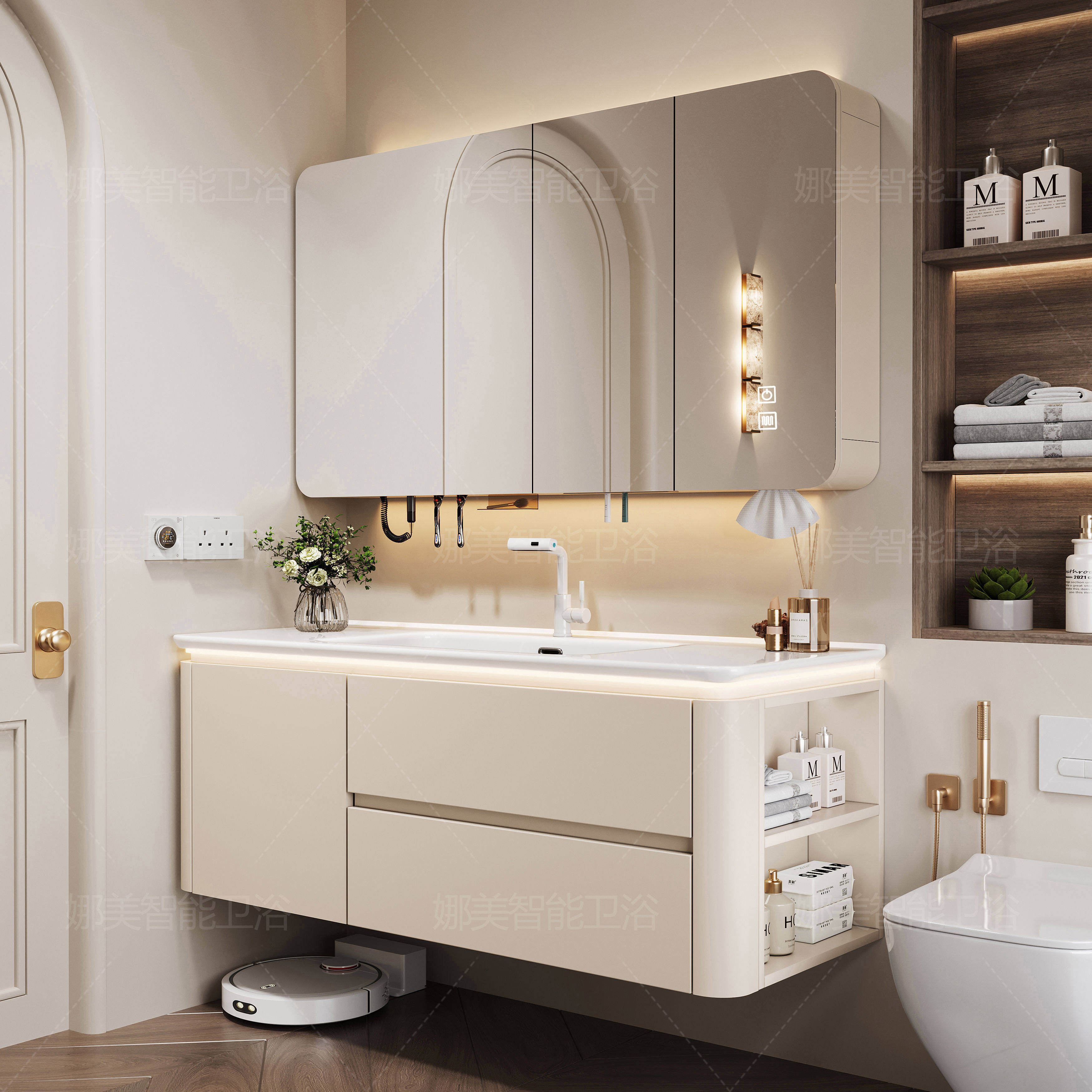 2025新款实木智能浴室柜陶瓷一体盆卫生间洗漱台洗手洗脸盆柜
