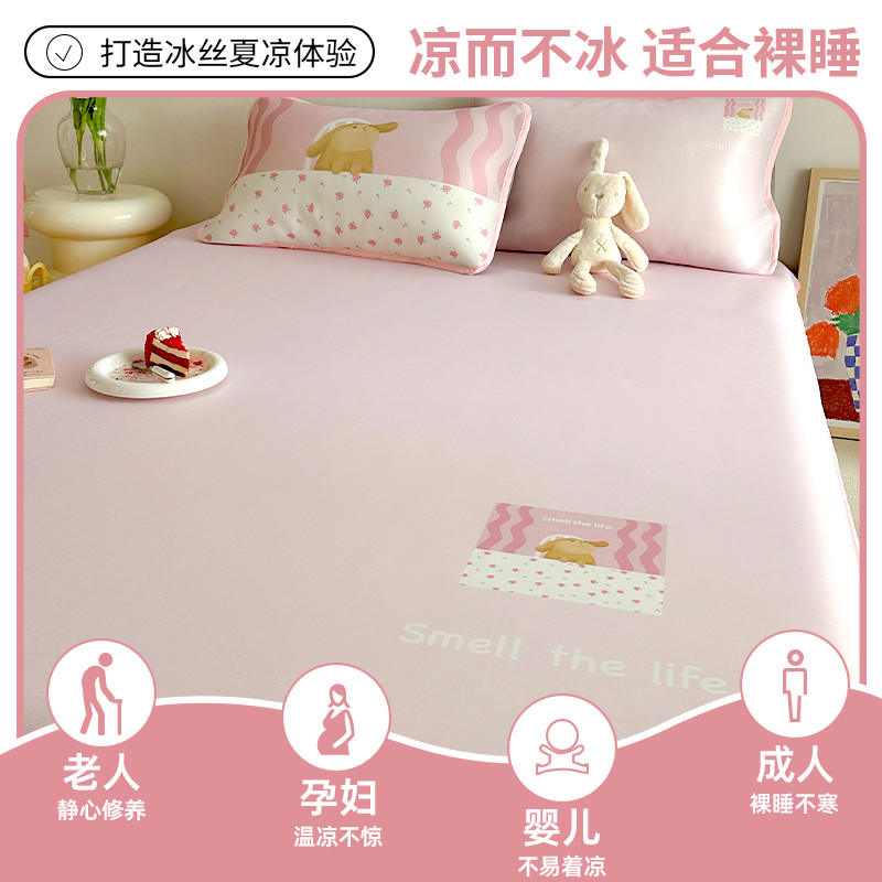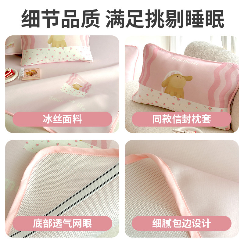 新款夏季冰丝凉席床笠三件套空调软席子可机洗学生宿舍单人冰