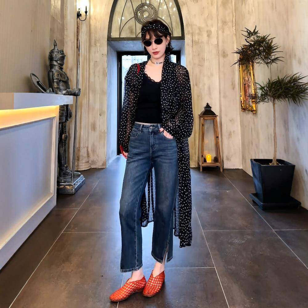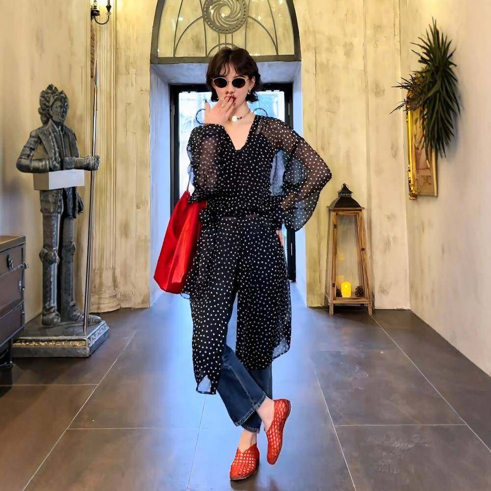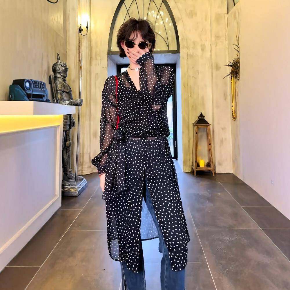 大码叠穿长款裙子春季流行穿搭2025新款微胖mm收腰显瘦波点连衣裙