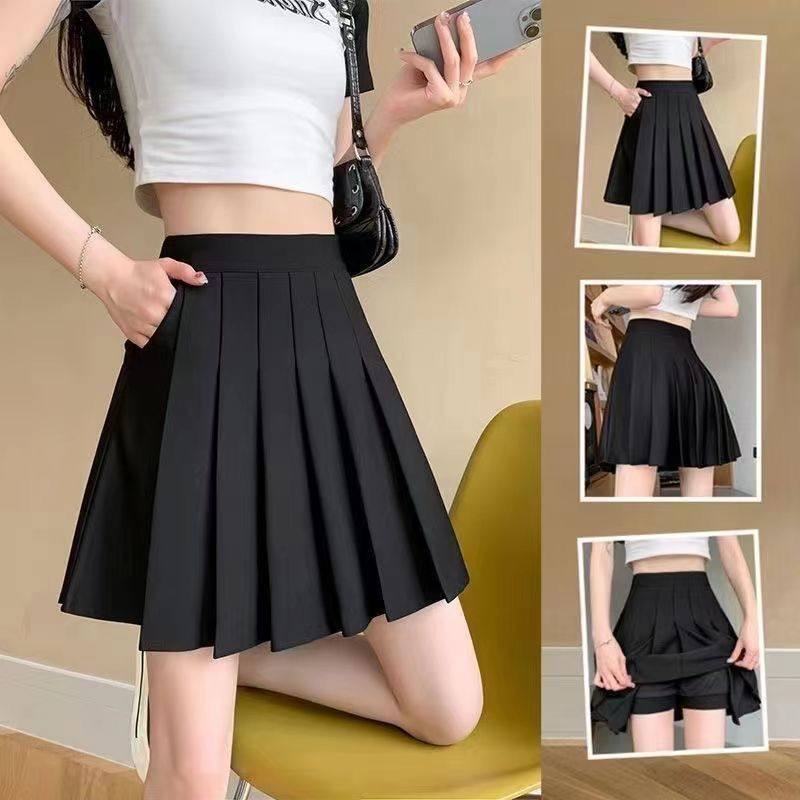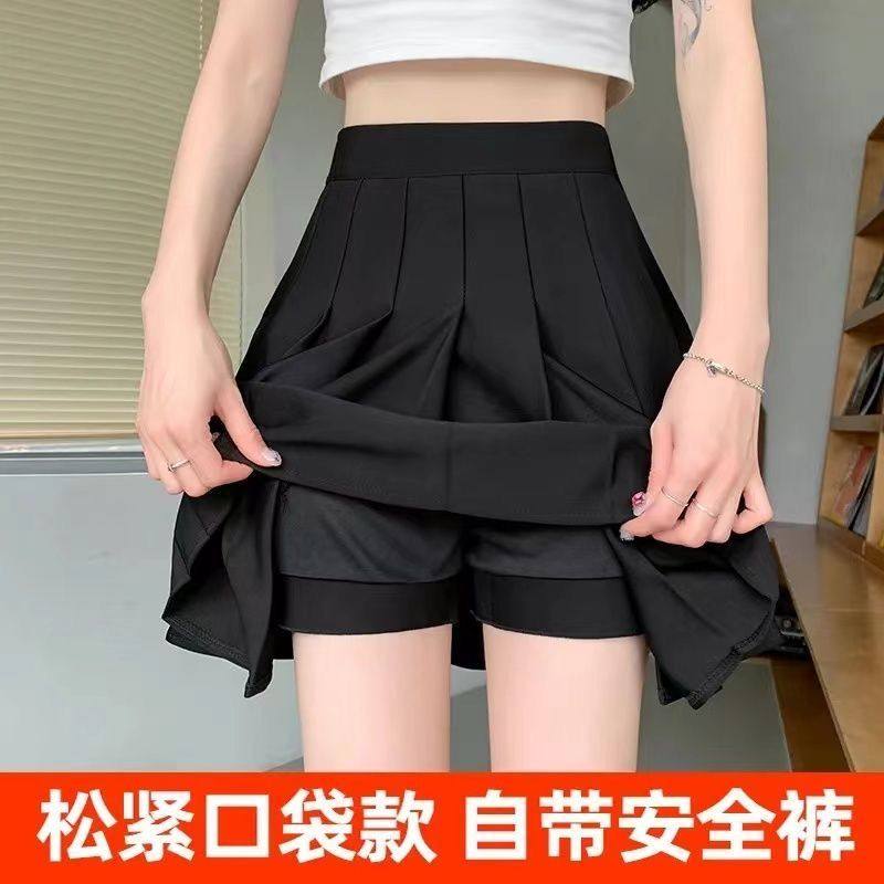 爆款百褶裙口袋夏季小个子松紧高腰弹力短裙女胖mm大码显瘦半身裙