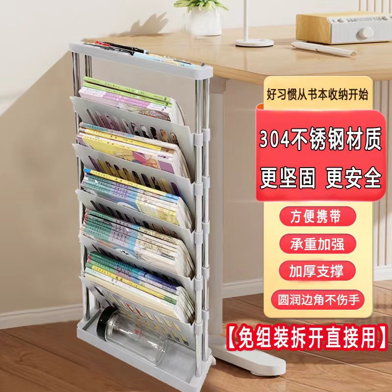 教室办公室学生书架阅读落地桌面边书本收纳置物架神器立架挂书袋