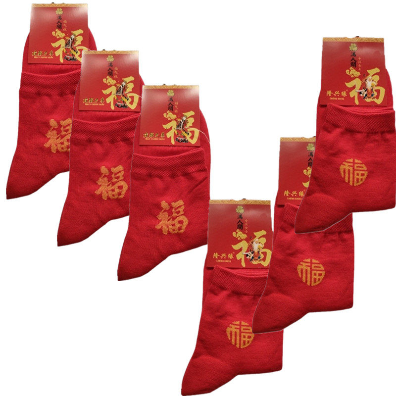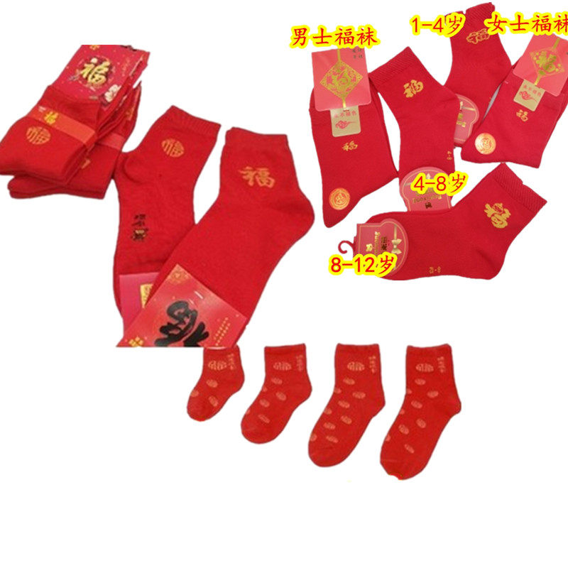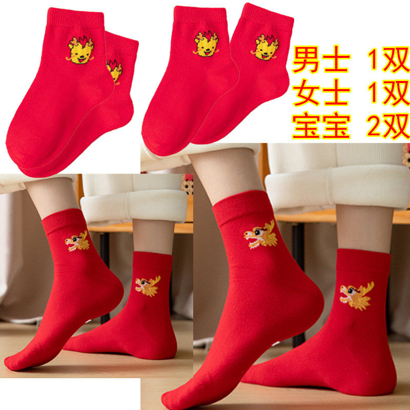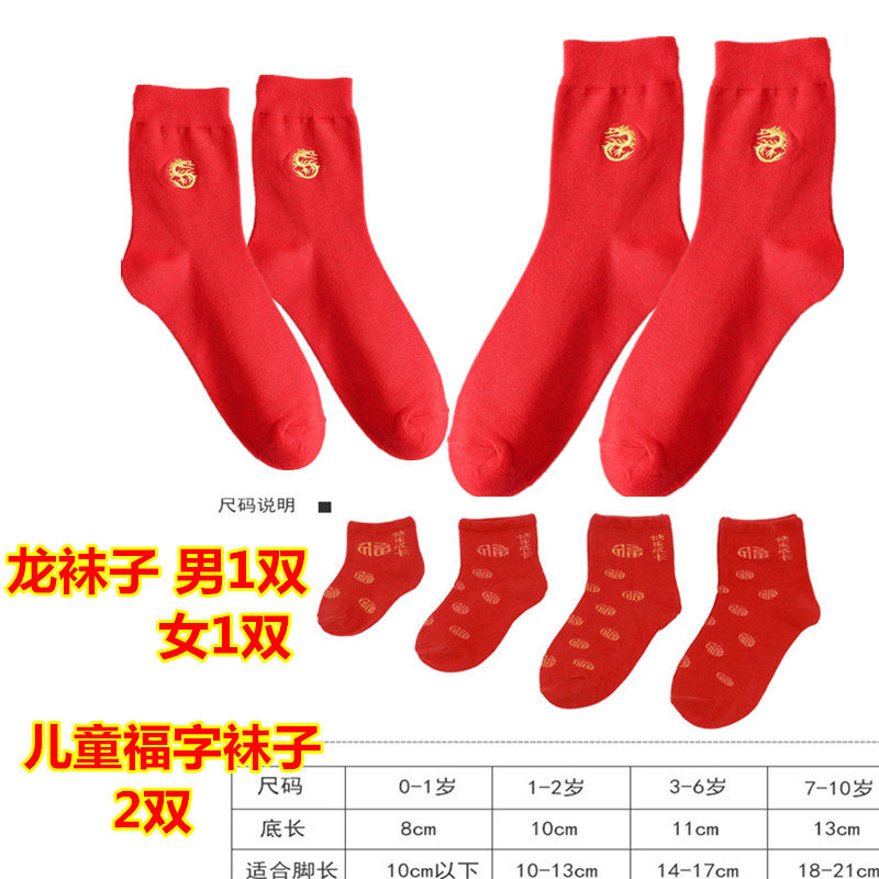 亲子袜子3双 一家三口棉质大红袜子本命新年男女宝宝爸妈福字红袜