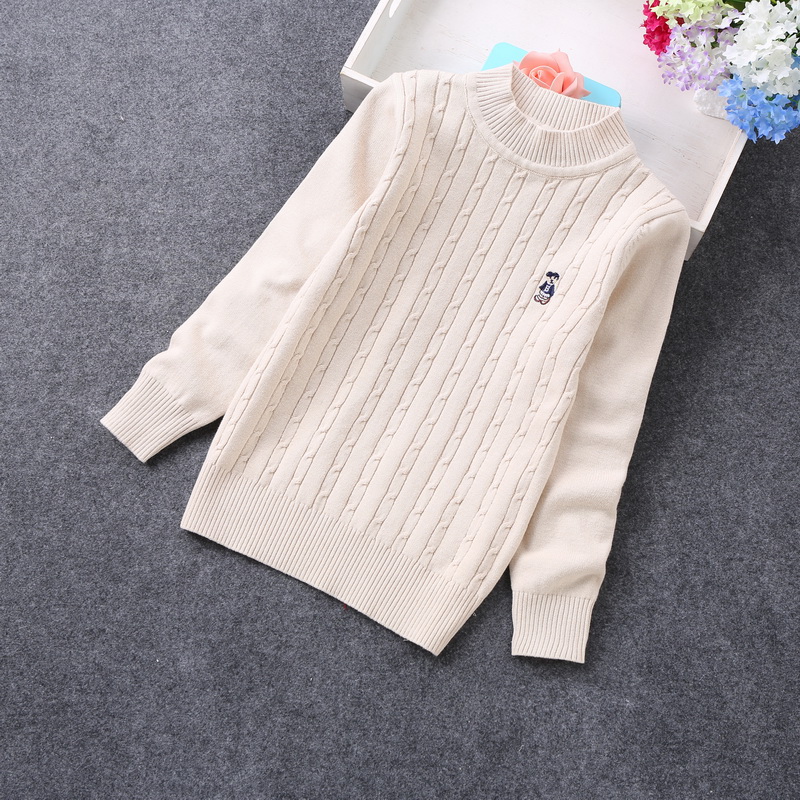 男童秋冬加绒全棉套头打底衫儿童针织衫毛衣女童中大童白色弹力衫