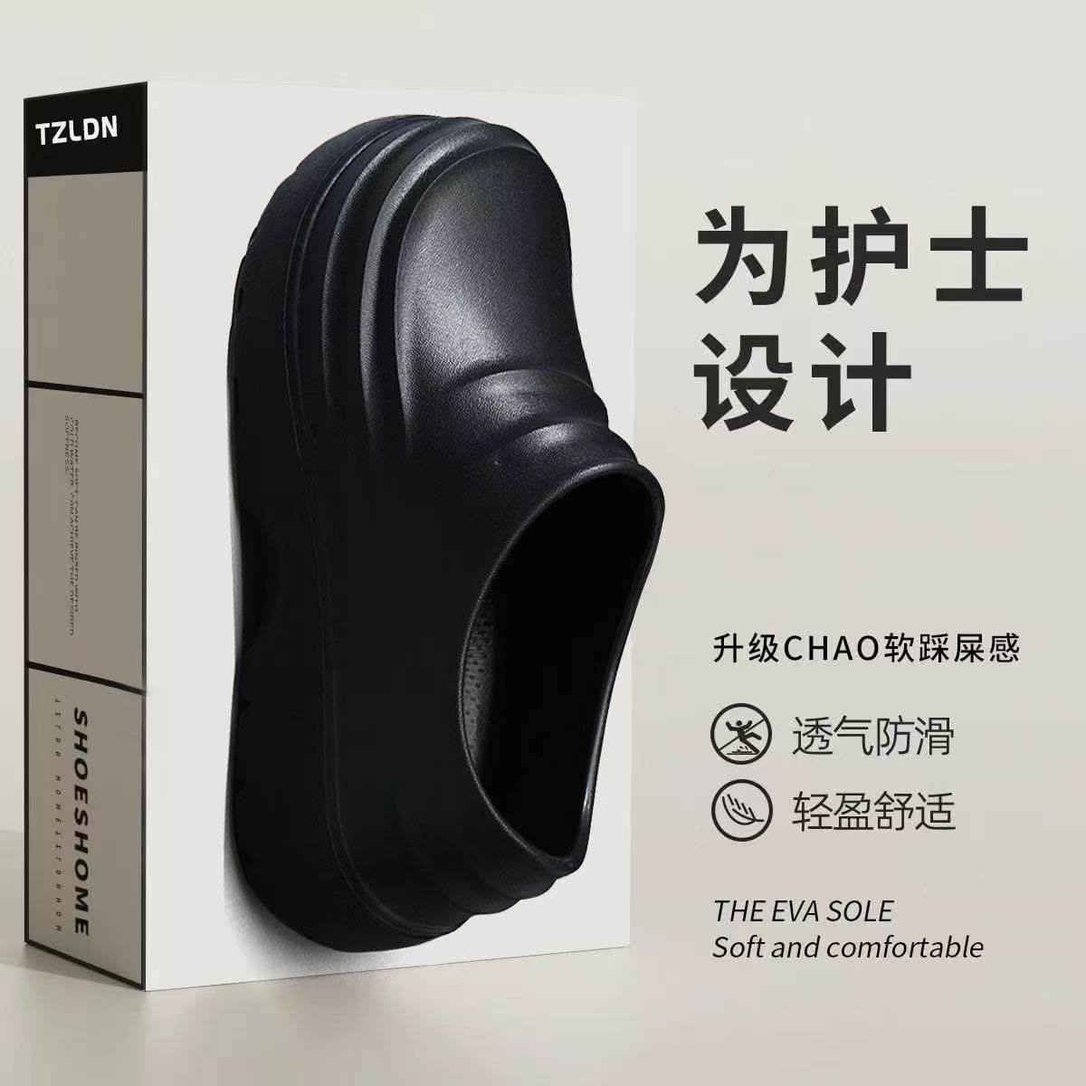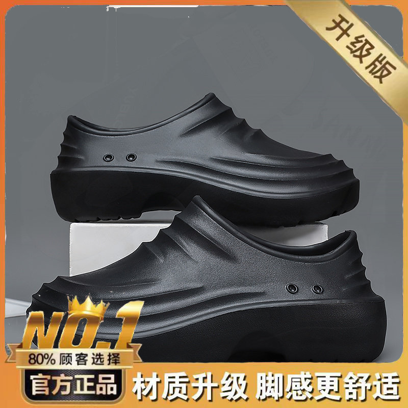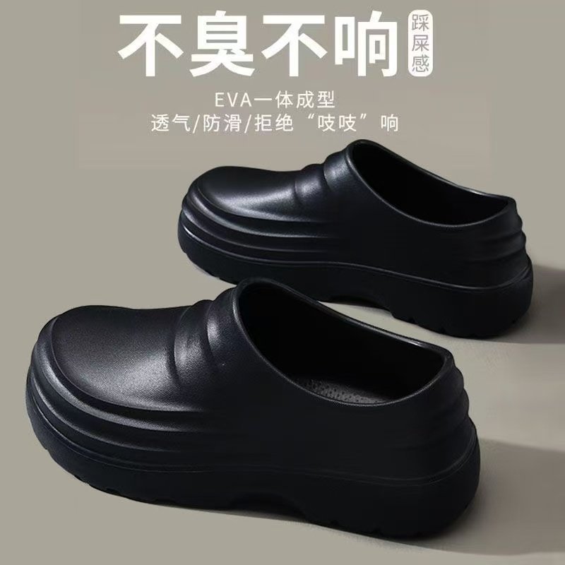 上班工作厨房劳保一脚蹬软底轻便纯黑色男鞋厨师鞋男防滑防水防油