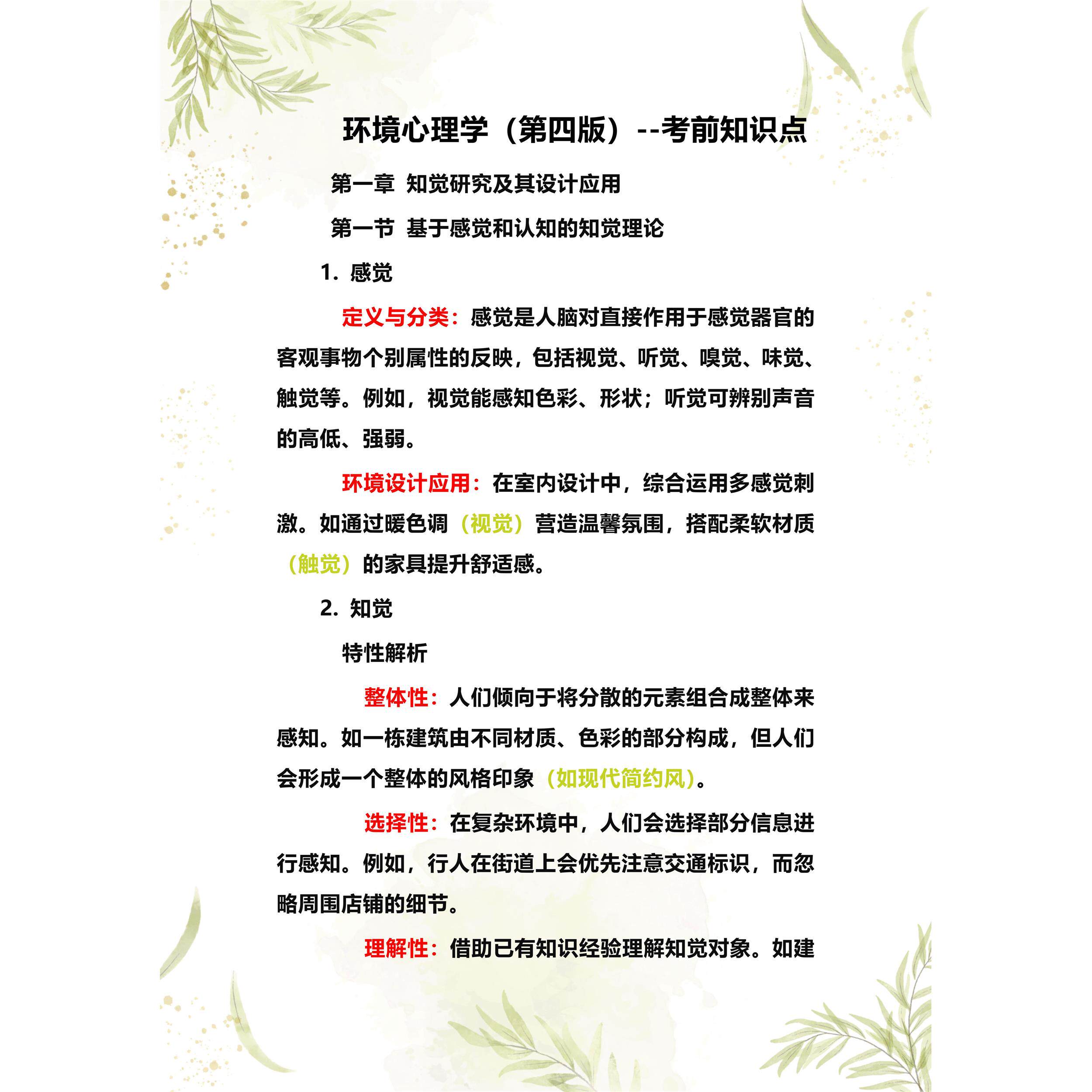 考点重点 13740环境心理学(第四版) 考纲讲解自考笔记 资料 自考复习过关思维导图 精讲视频网课 考前押题资料