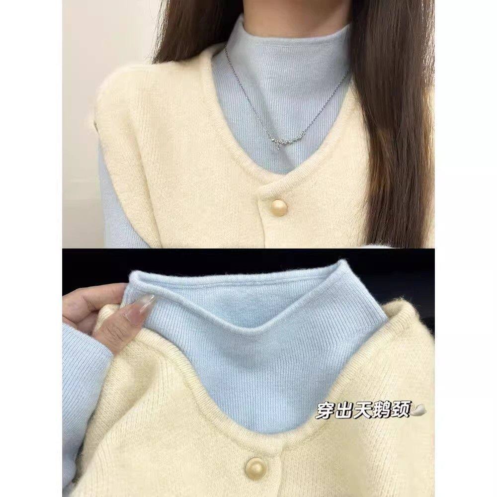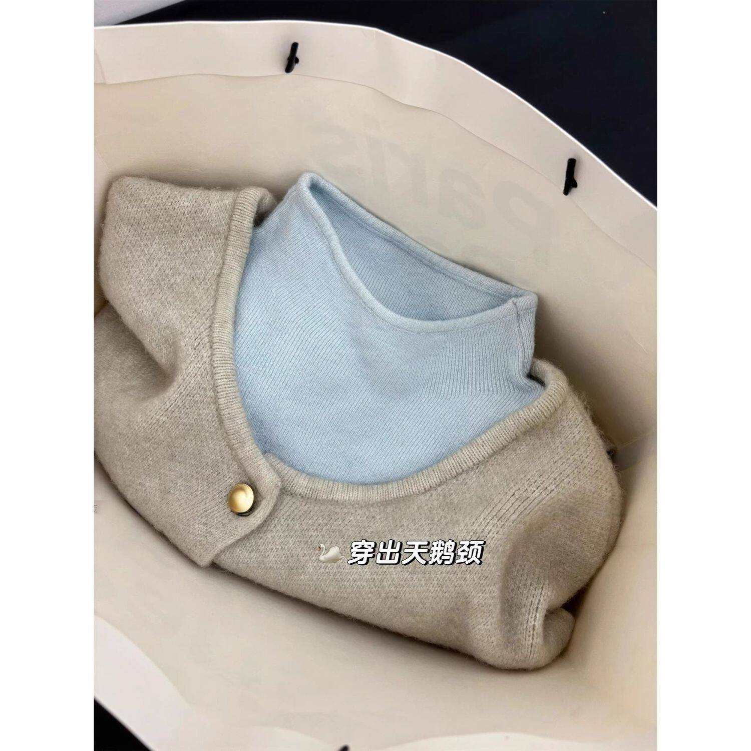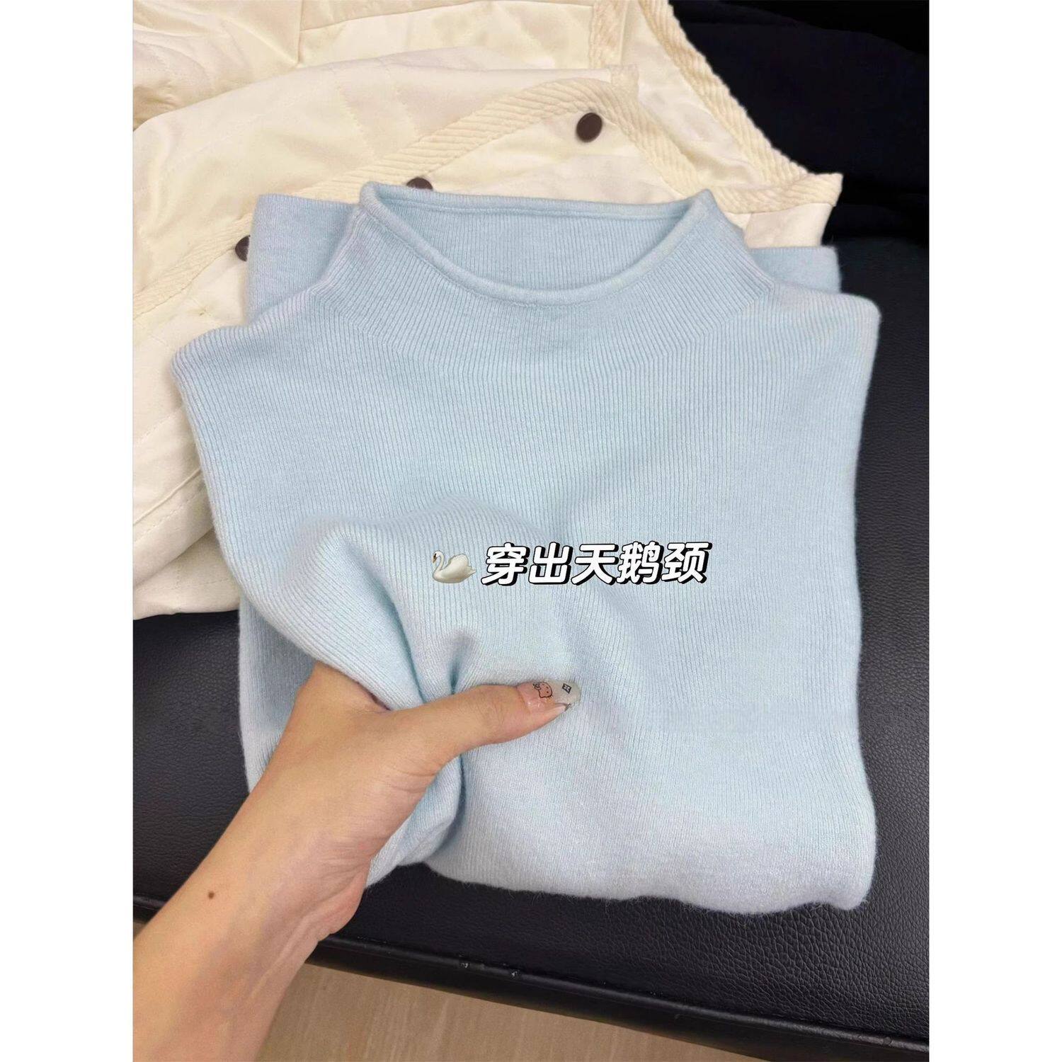 纯色系内搭半高领修身显瘦长袖上衣女秋冬baby蓝减龄针织打底衫