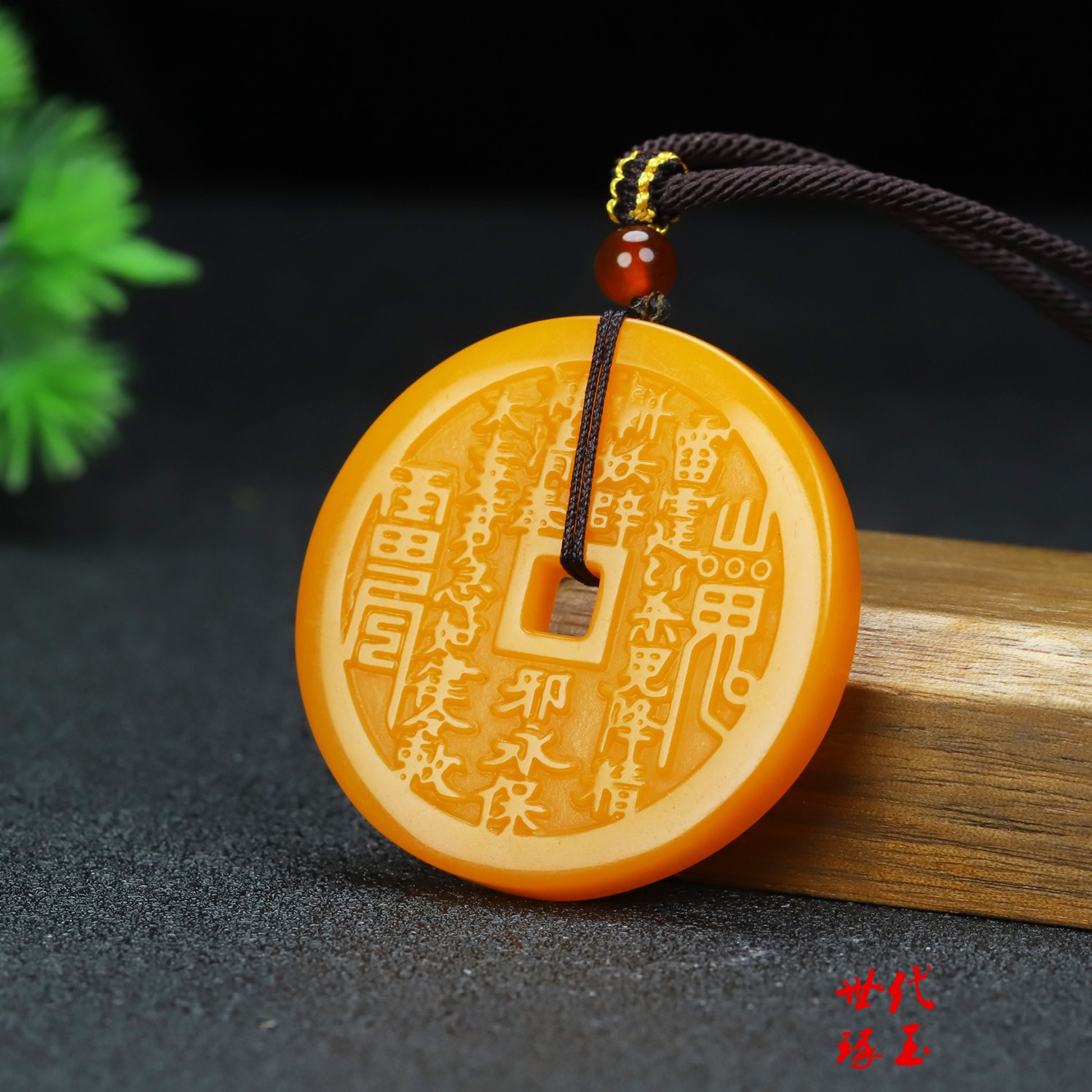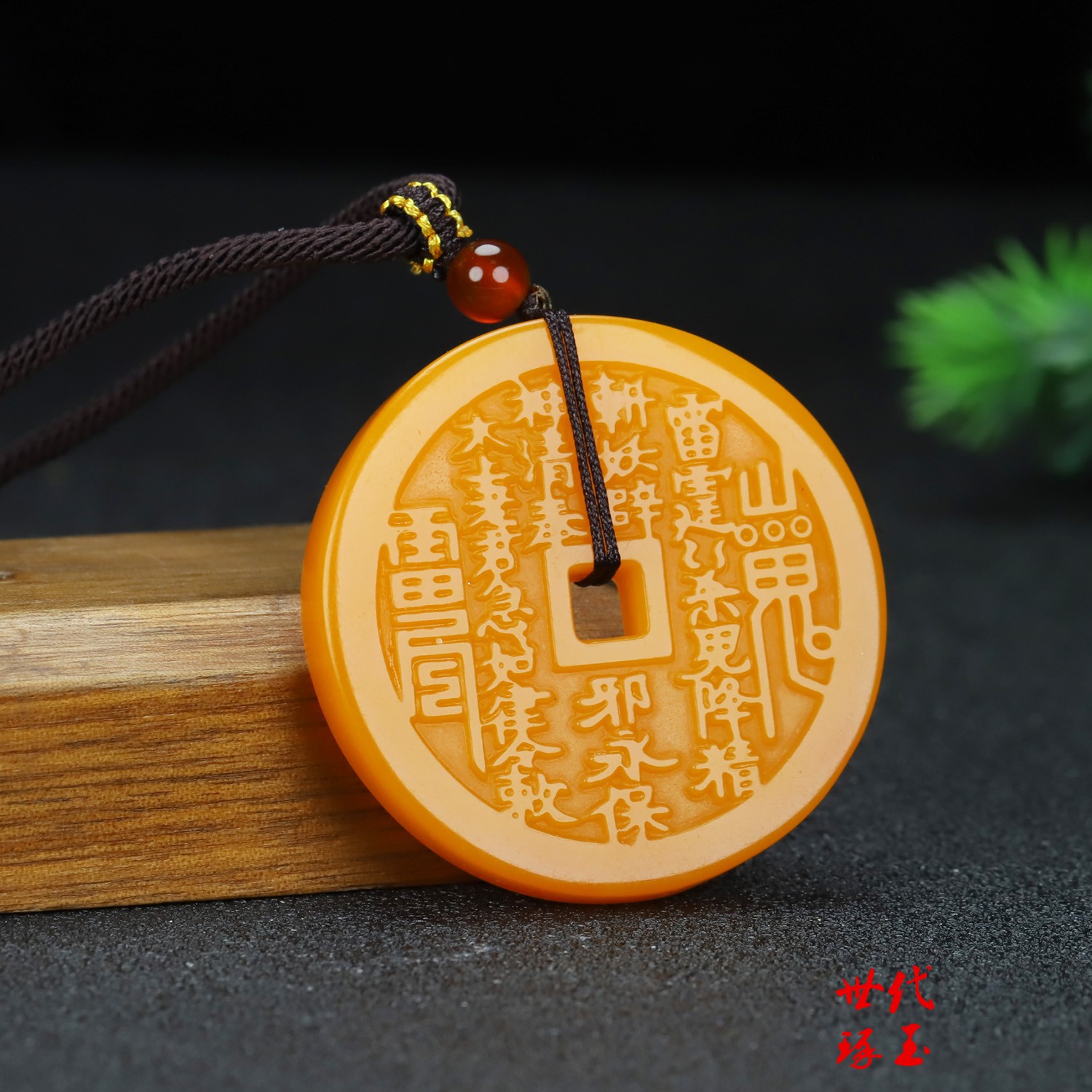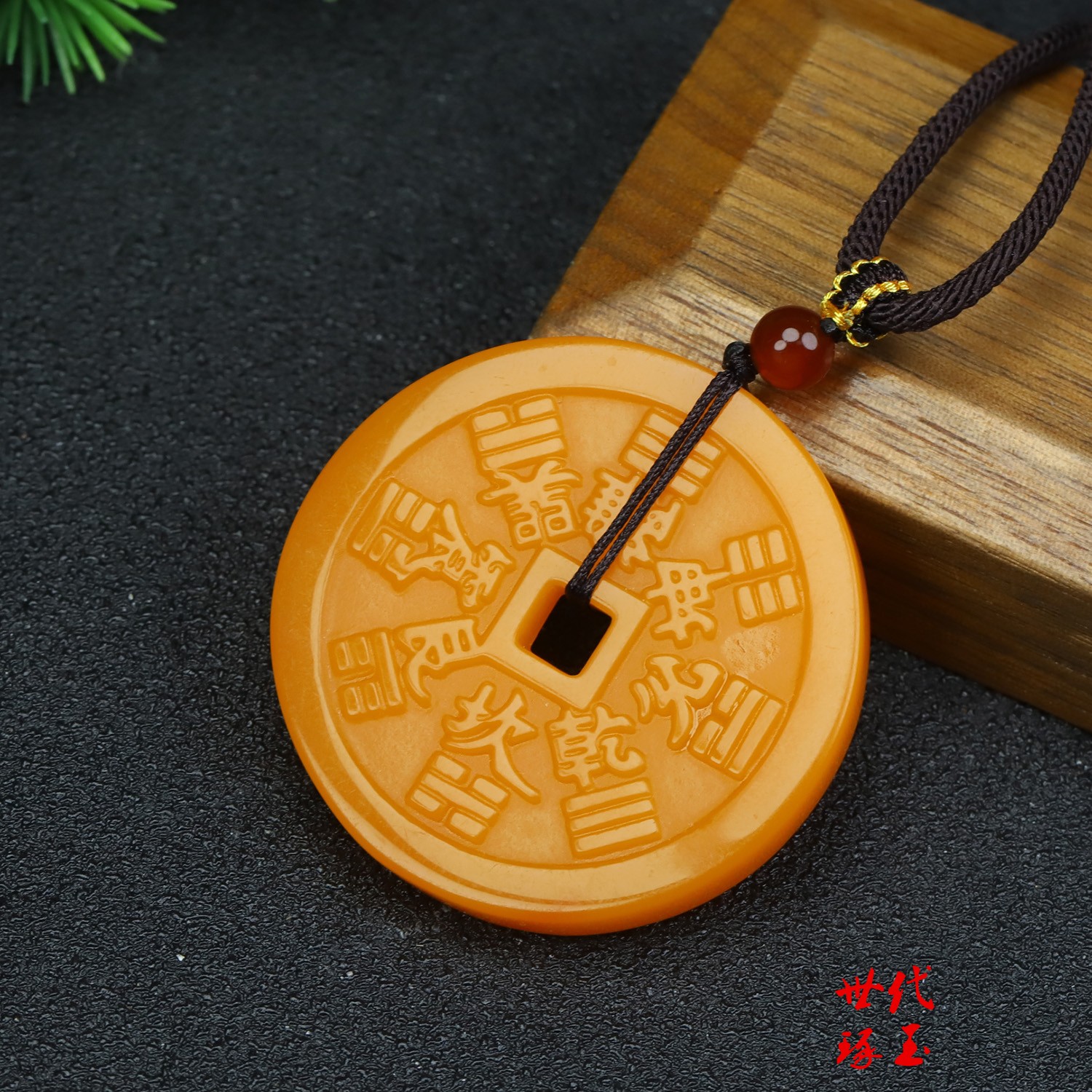 和田玉黄玉山鬼花钱吊坠新疆黄龙玉山鬼花八卦平安扣挂件玉佩玉坠