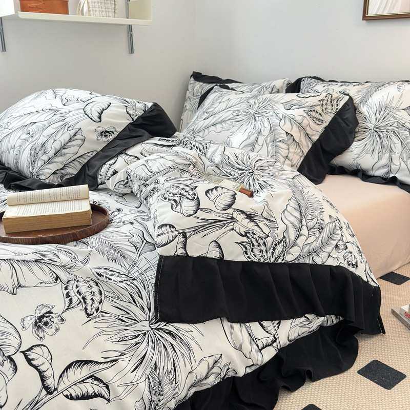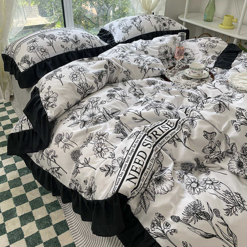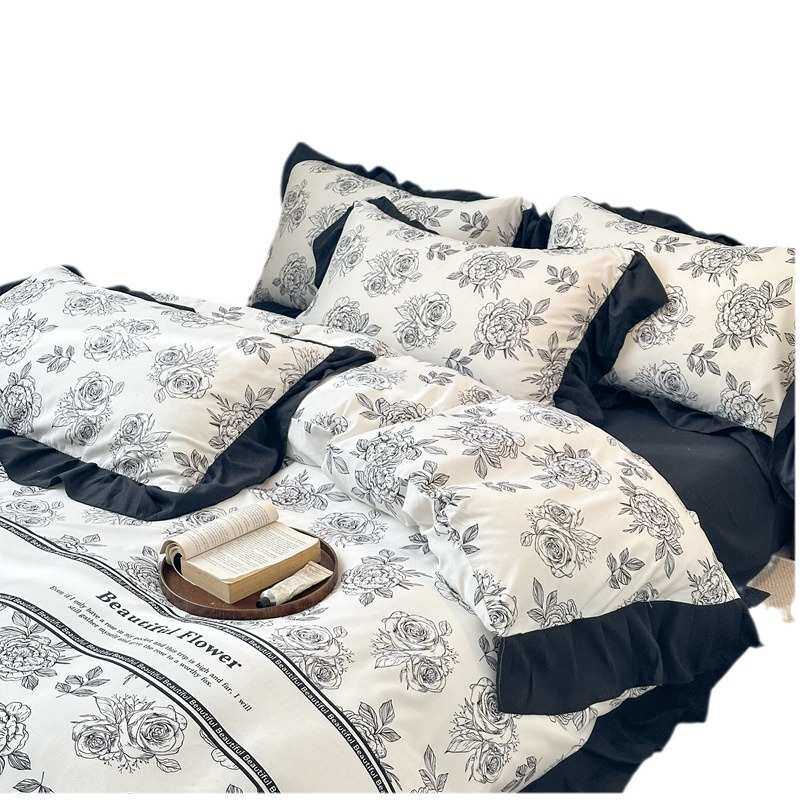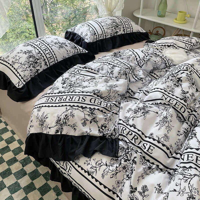 2024新款赫本风花边水洗棉四件套床单被套学生宿舍三件套床上用品
