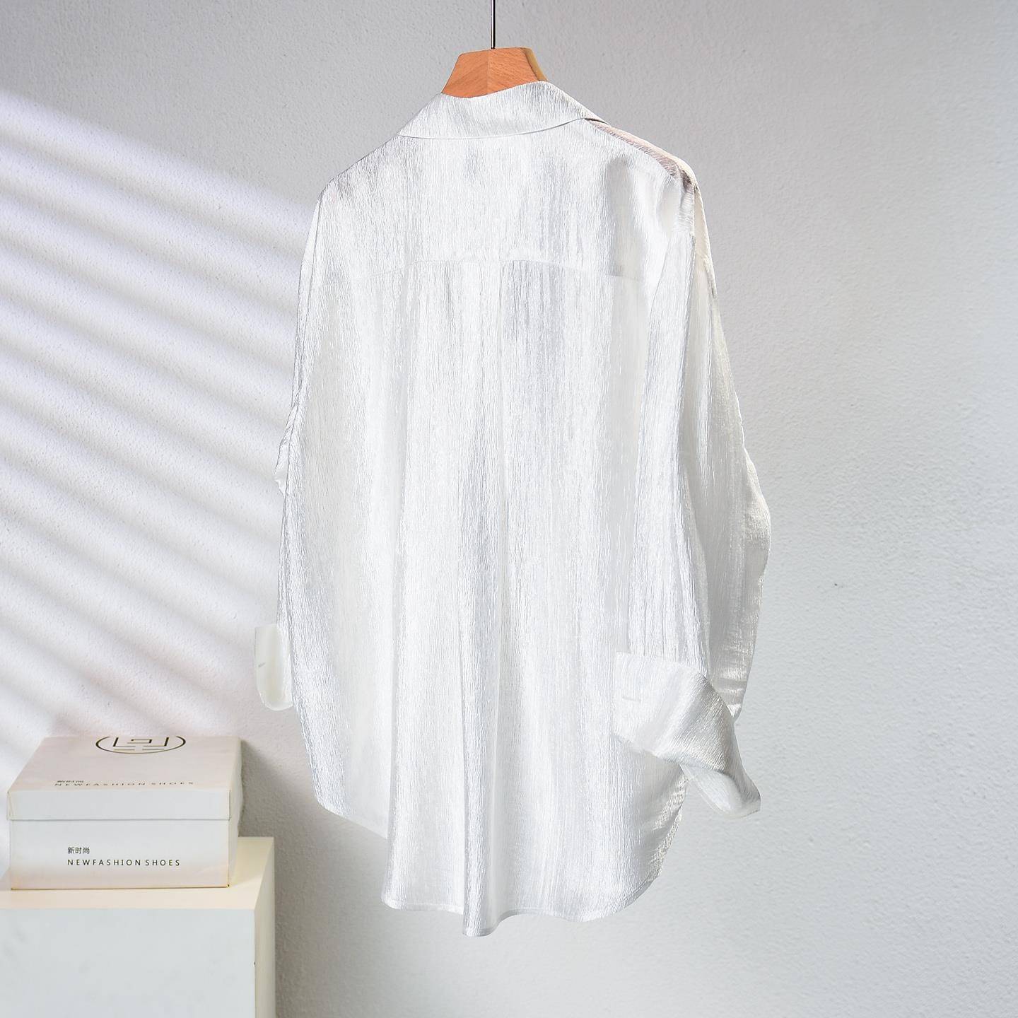 夏季珠光高级感长袖衬衫女 轻薄透气凉感宽松防晒衬衫休闲时尚