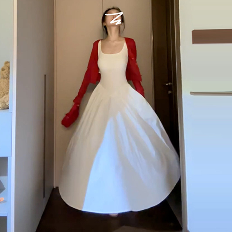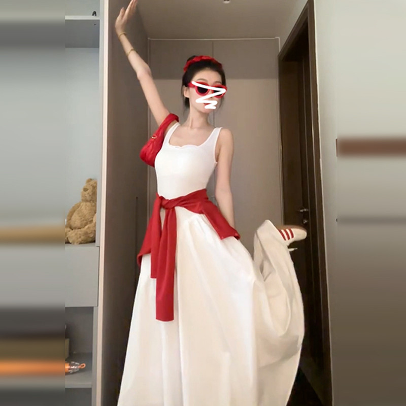 白色吊带连衣裙子女2024新款秋季韩系穿搭法式气质高级感套装长裙