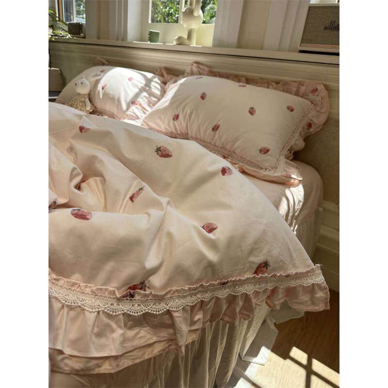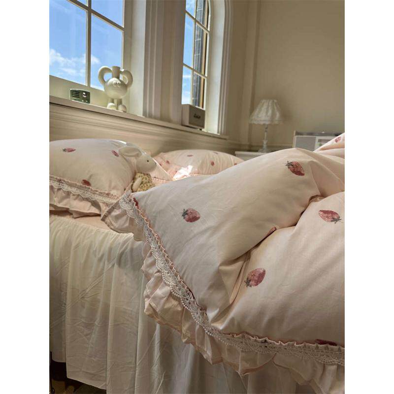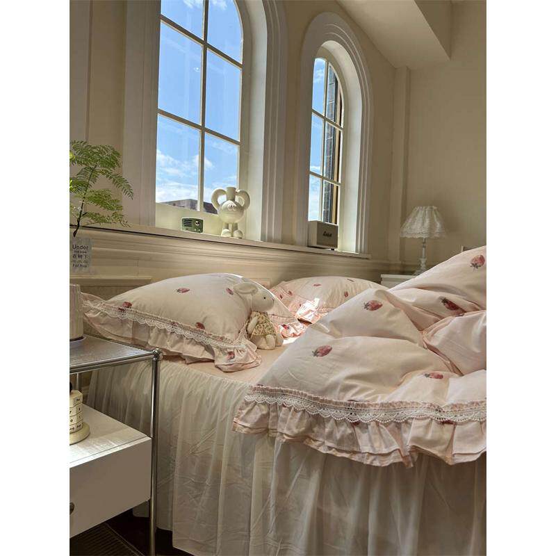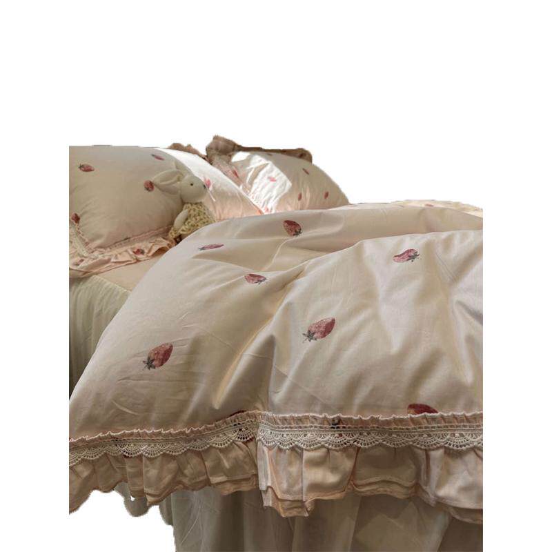 XEI3韩式公主风少女公主草莓花边床裙四件套1.5m1.8床单被套