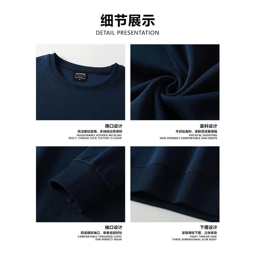 加绒女款卫衣2025新款爆款秋冬季藏蓝色宽松慵懒圆领无帽上衣长袖