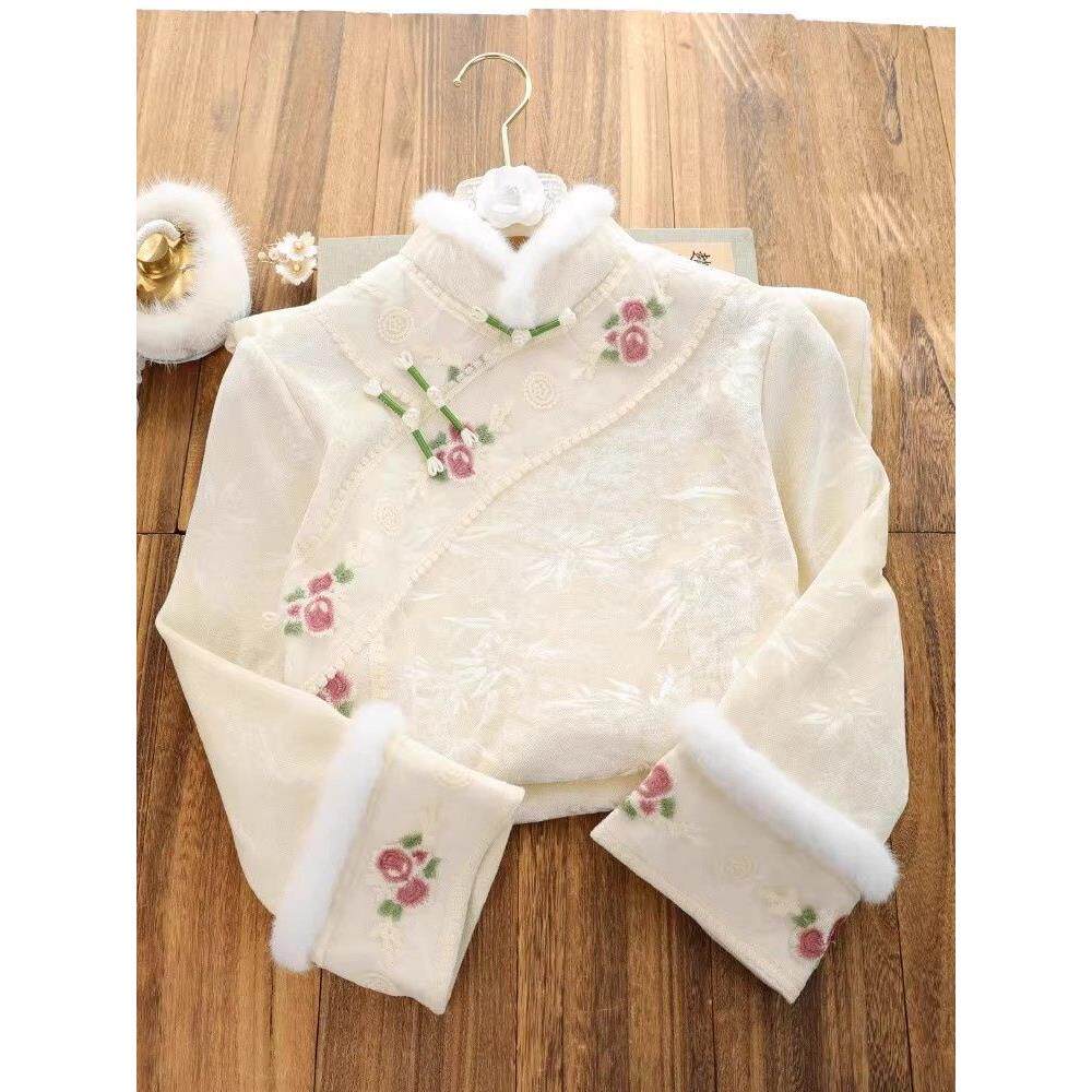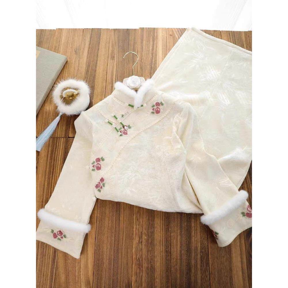 旗袍冬季复古2025加厚新款加绒米色日常保暖连衣裙中式改良旗袍裙