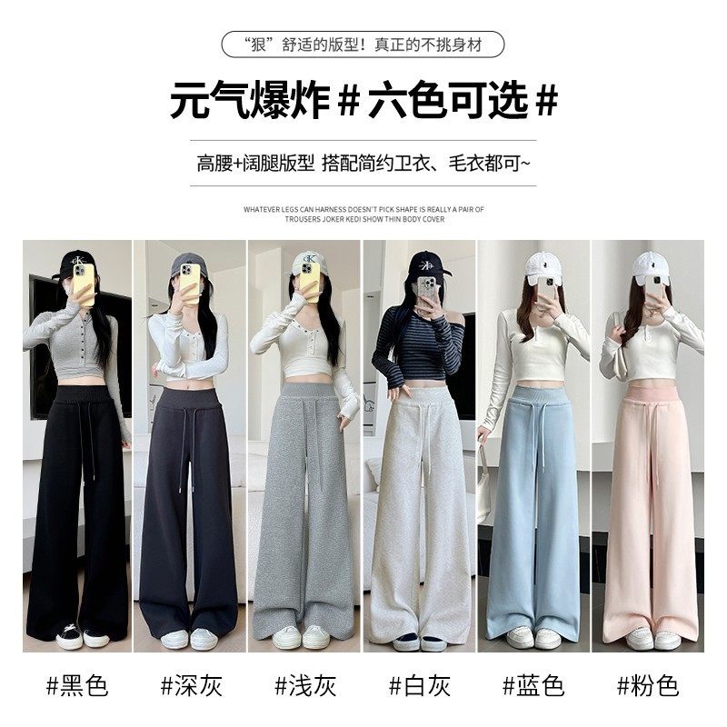 加绒高腰运动裤子女2026新款美式休闲显瘦卫裤直筒阔腿裤