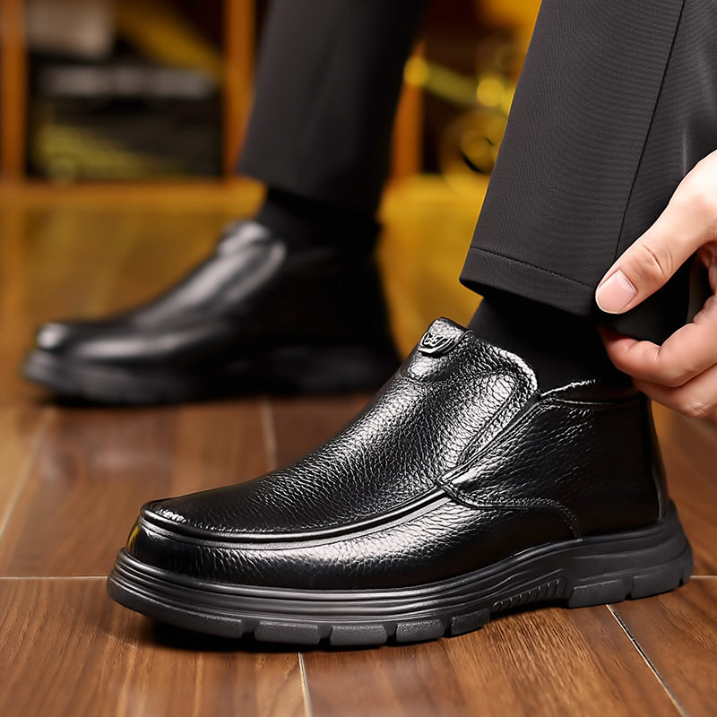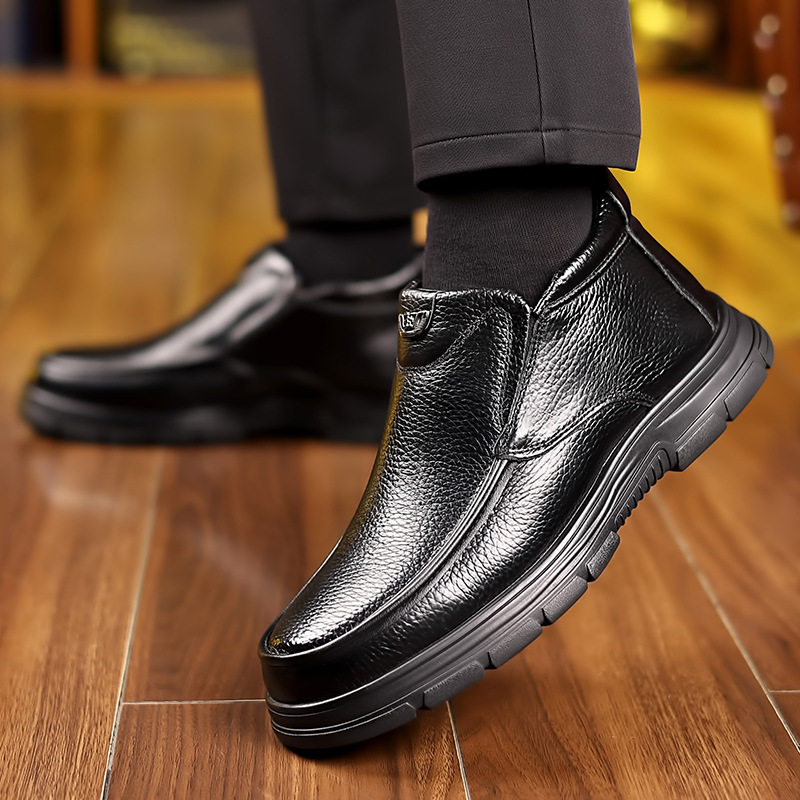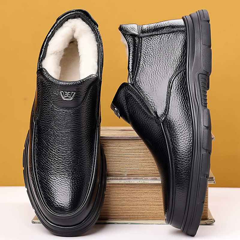冬款奥古斯都棉鞋男真皮高帮保暖加绒棉皮鞋加厚羊毛爸爸鞋男鞋
