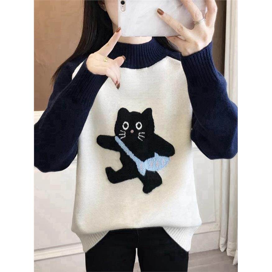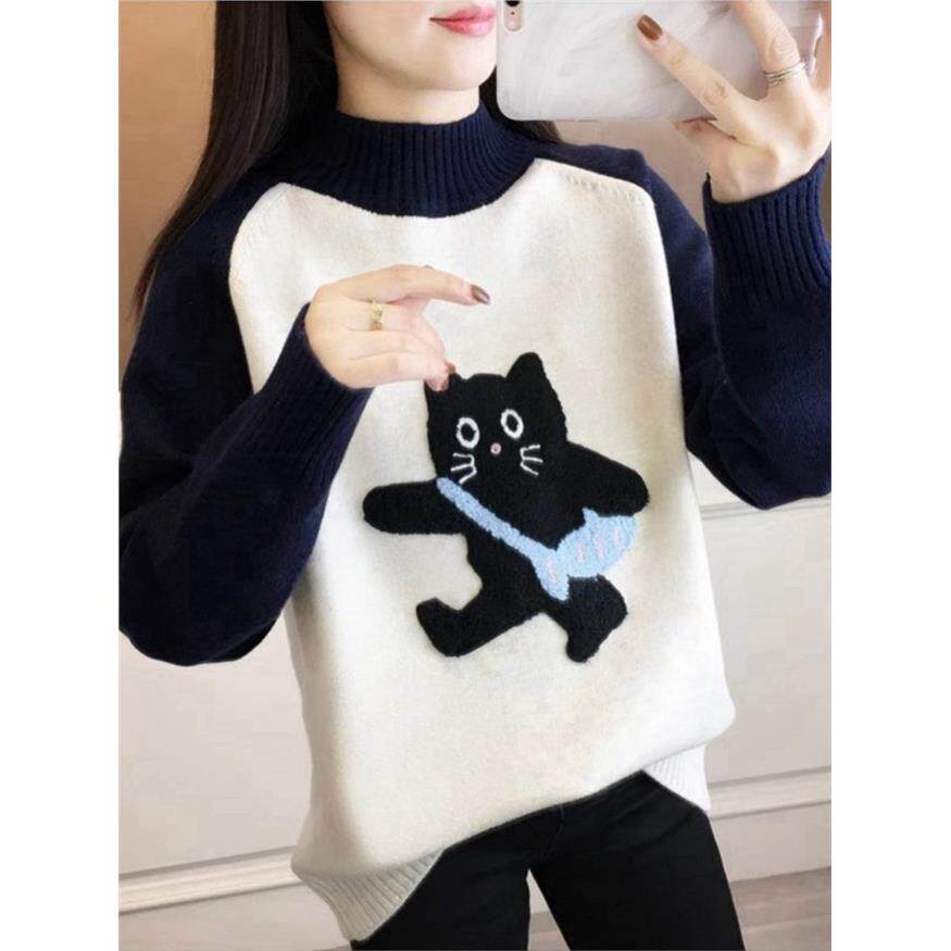初中生秋冬女生半高领加厚针织衫,中学生及大龄女生丝绒底针织衫