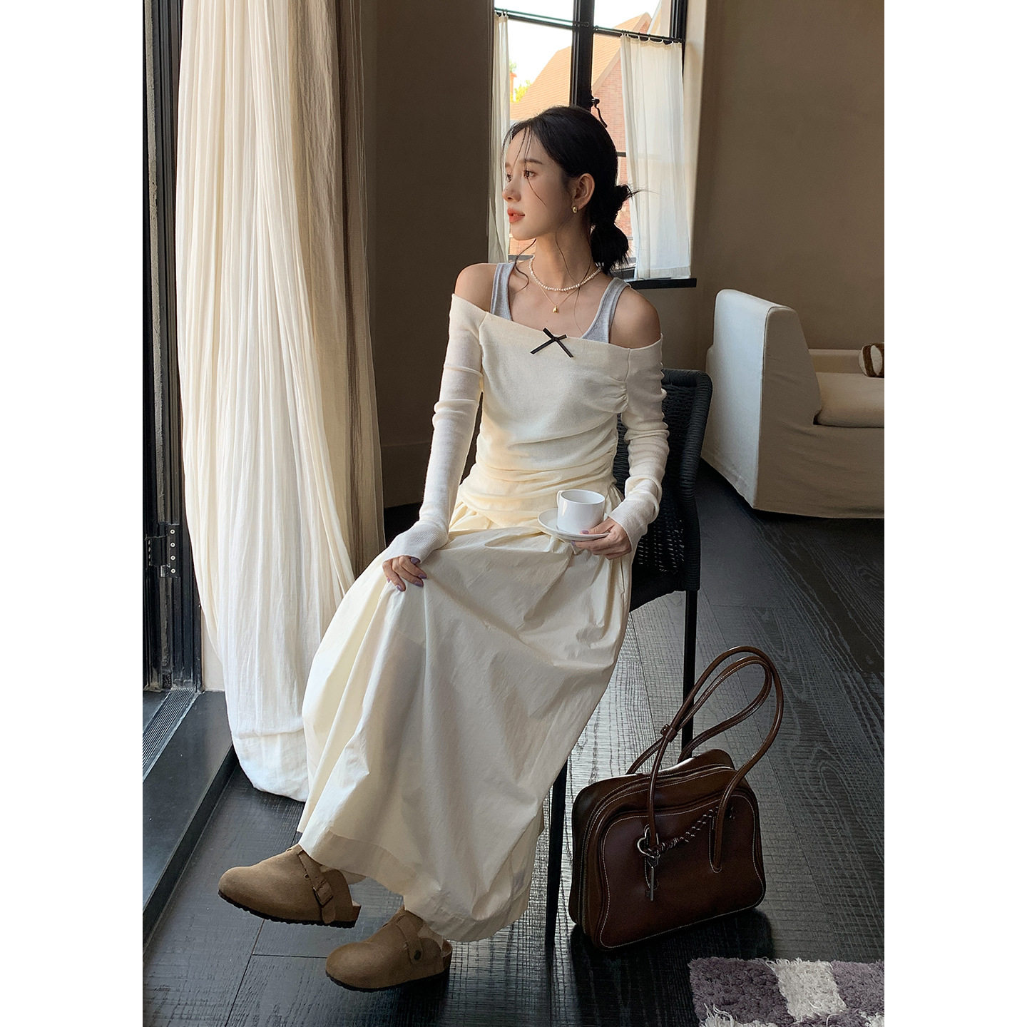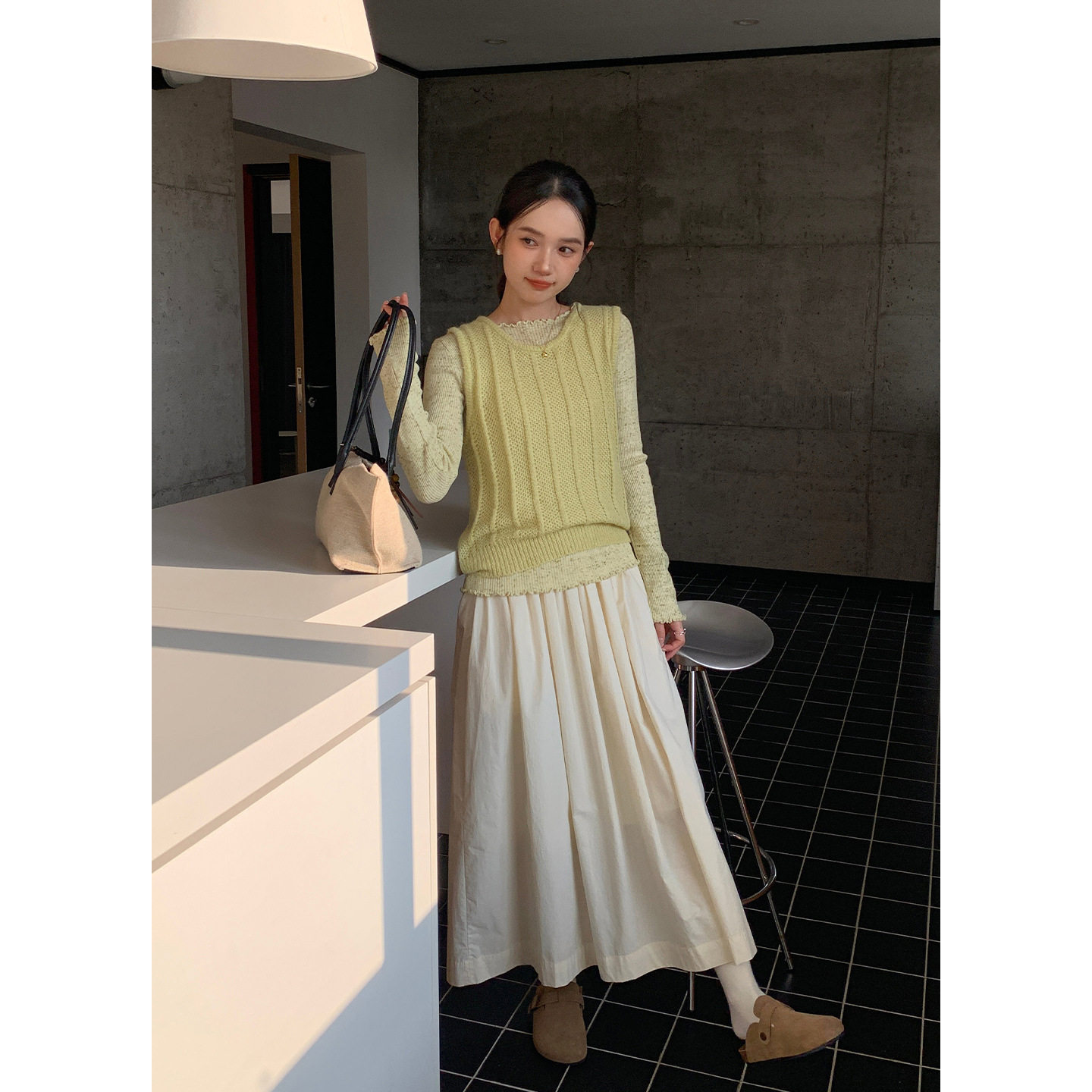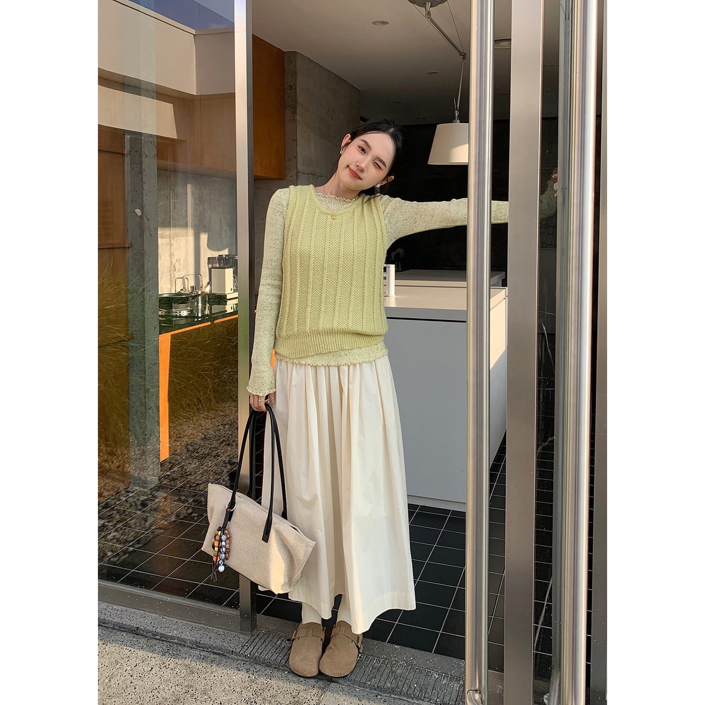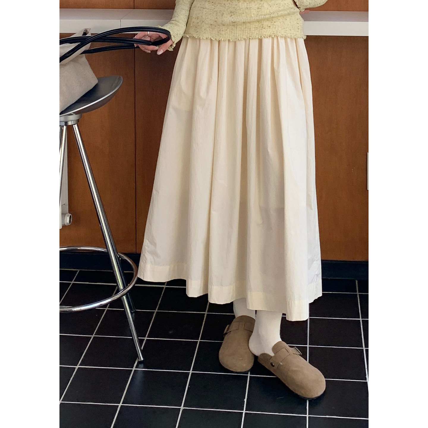 Tania 杏色初冬 东大门25韩系松紧腰中长款半身裙女高腰百搭A字裙