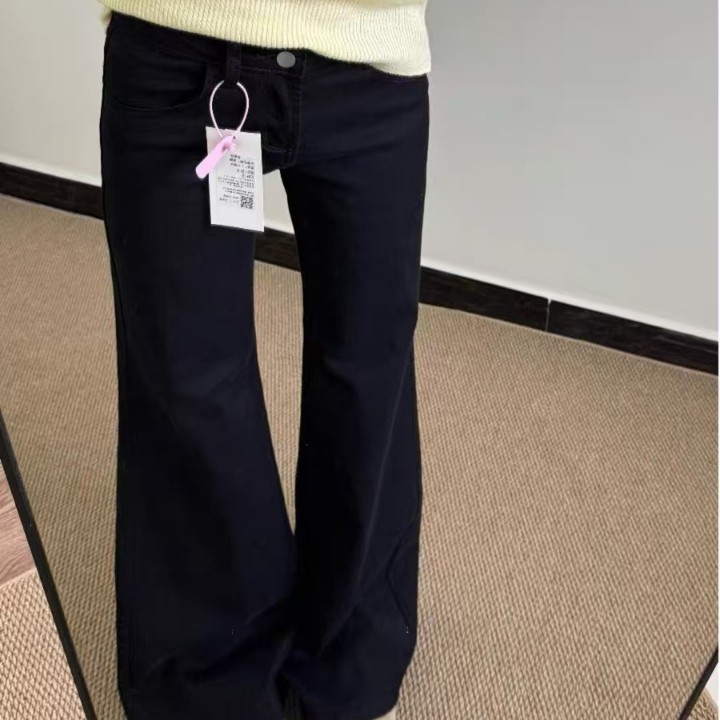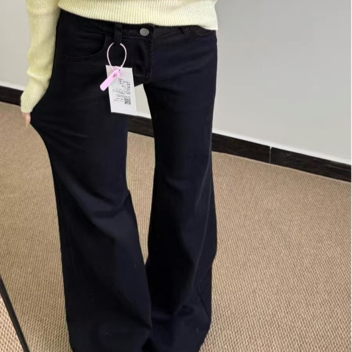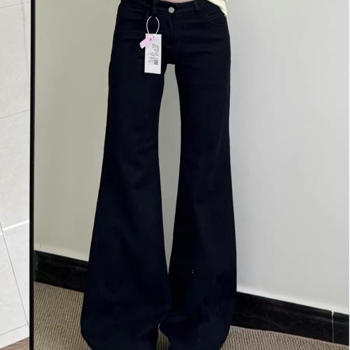 小个子美式黑色微喇阔腿牛仔裤女低腰宽松显瘦喇叭拖地裤