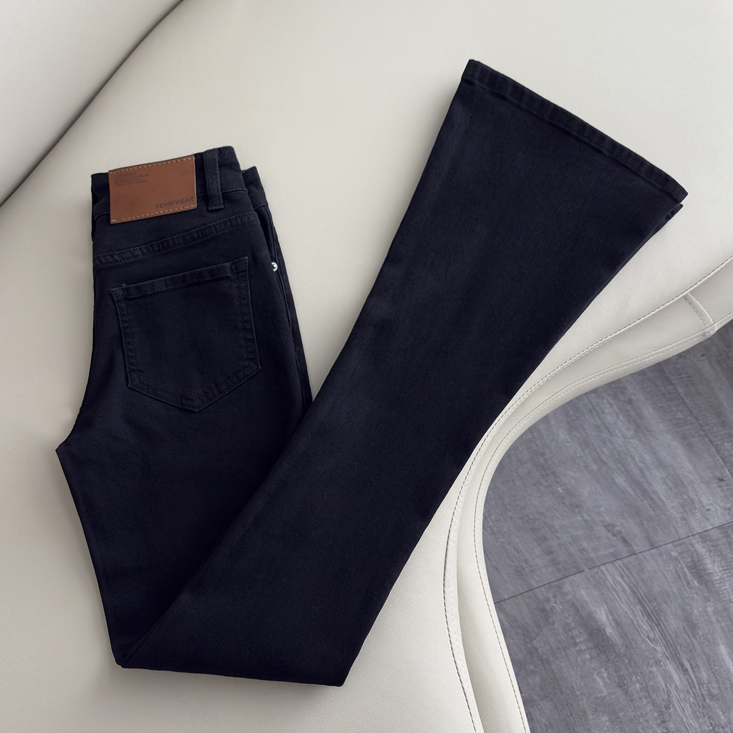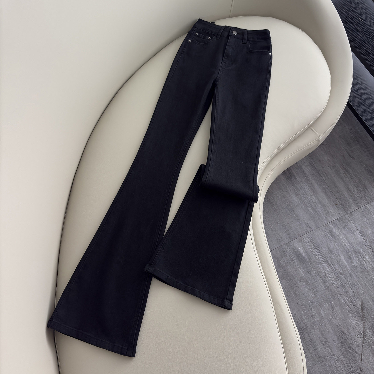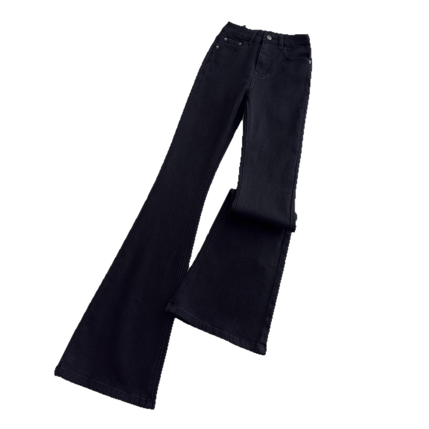2025春秋季新款黑色加绒微喇牛仔裤女高腰显瘦弹力拖地喇叭长裤子