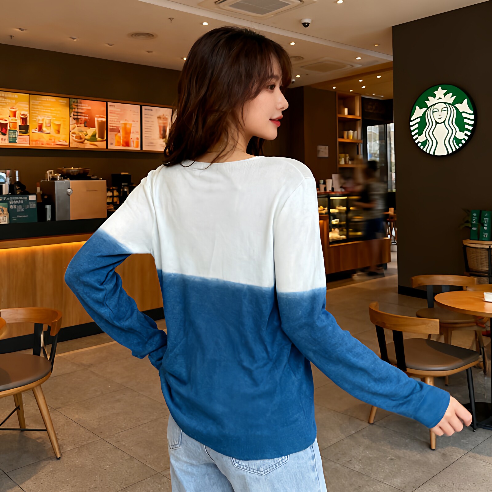 首页> 女装> 扎染针织外套女2026春秋新款宽松上衣开衫休闲百搭长袖v领毛衣女