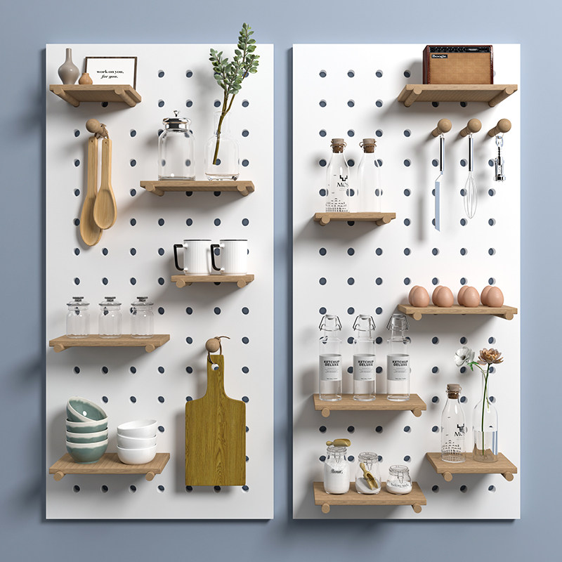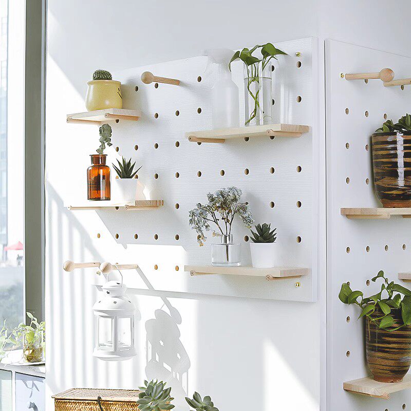 洞洞板实木家用墙上置物架玄关展示陈列架客厅木质墙壁隔板收纳架