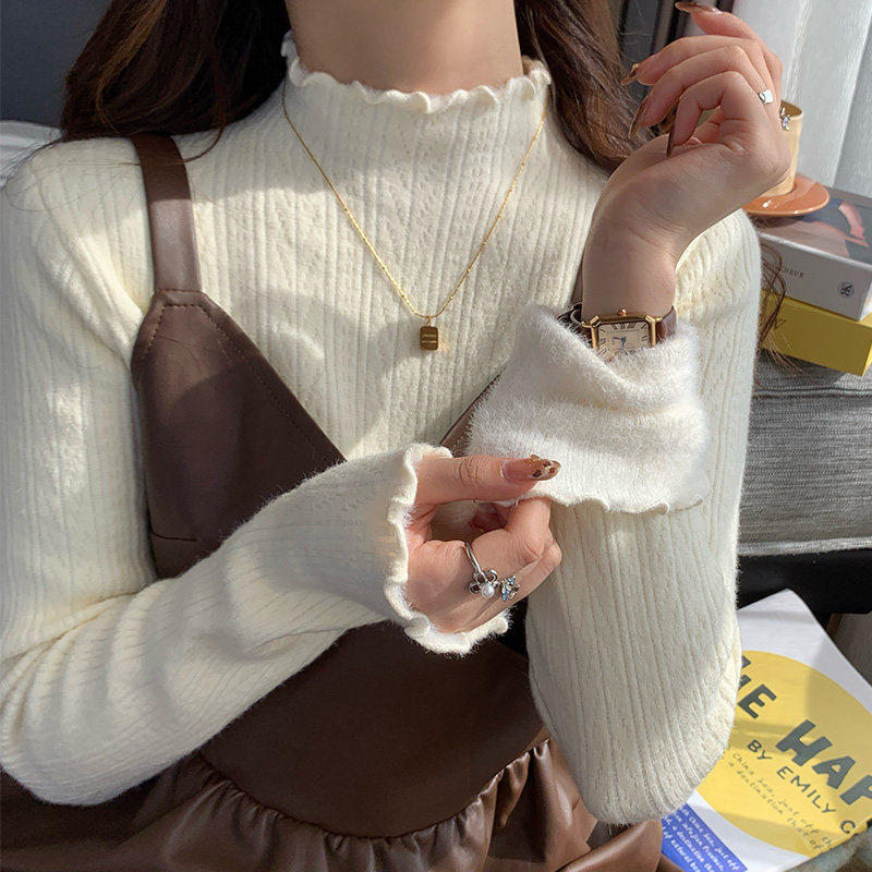 苏三三蓝色加绒毛衣女款2025新款冬季加厚内搭秋冬针织打底衫上衣