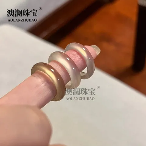 白月光指环戒指巴西玉髓玛瑙戒圈高冰小清新红玛瑙天然