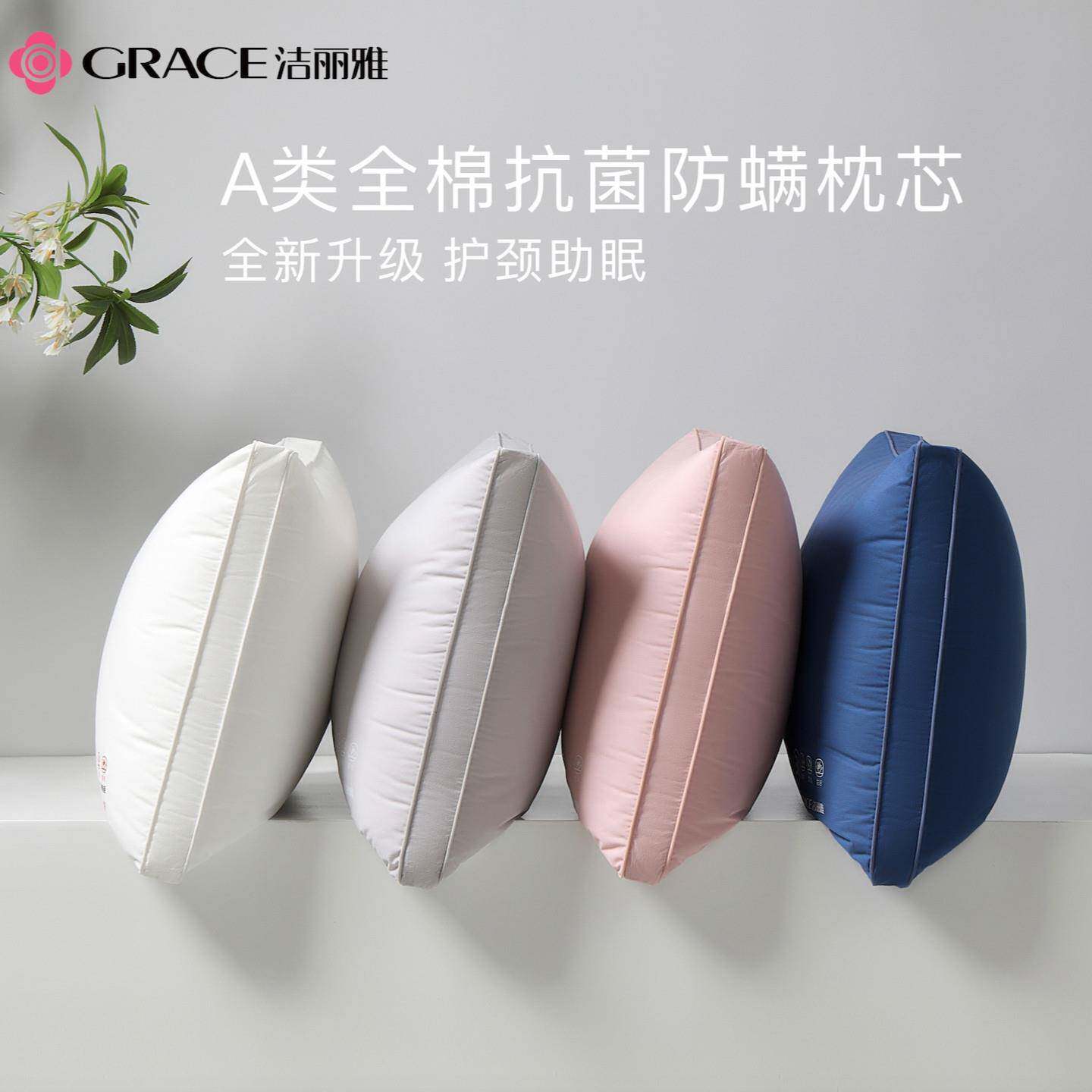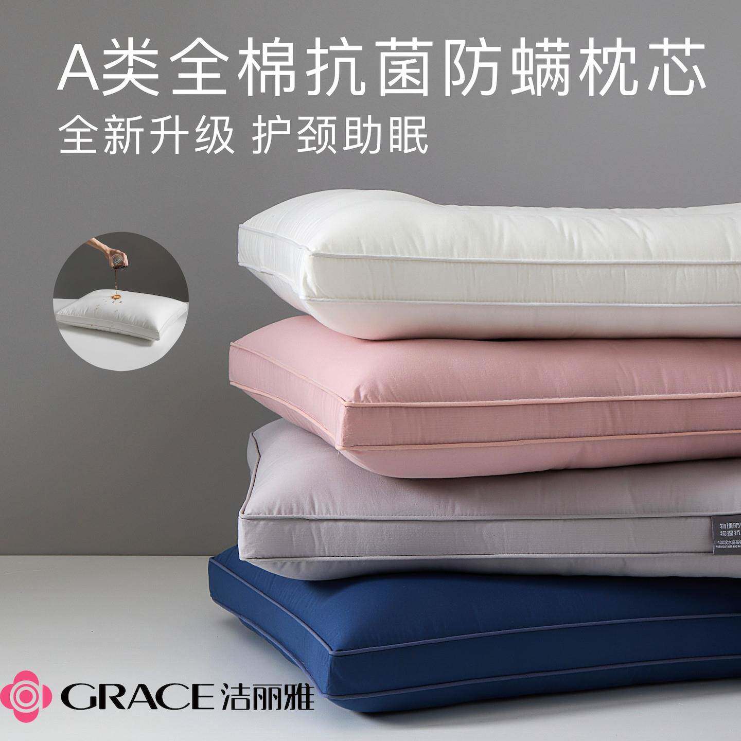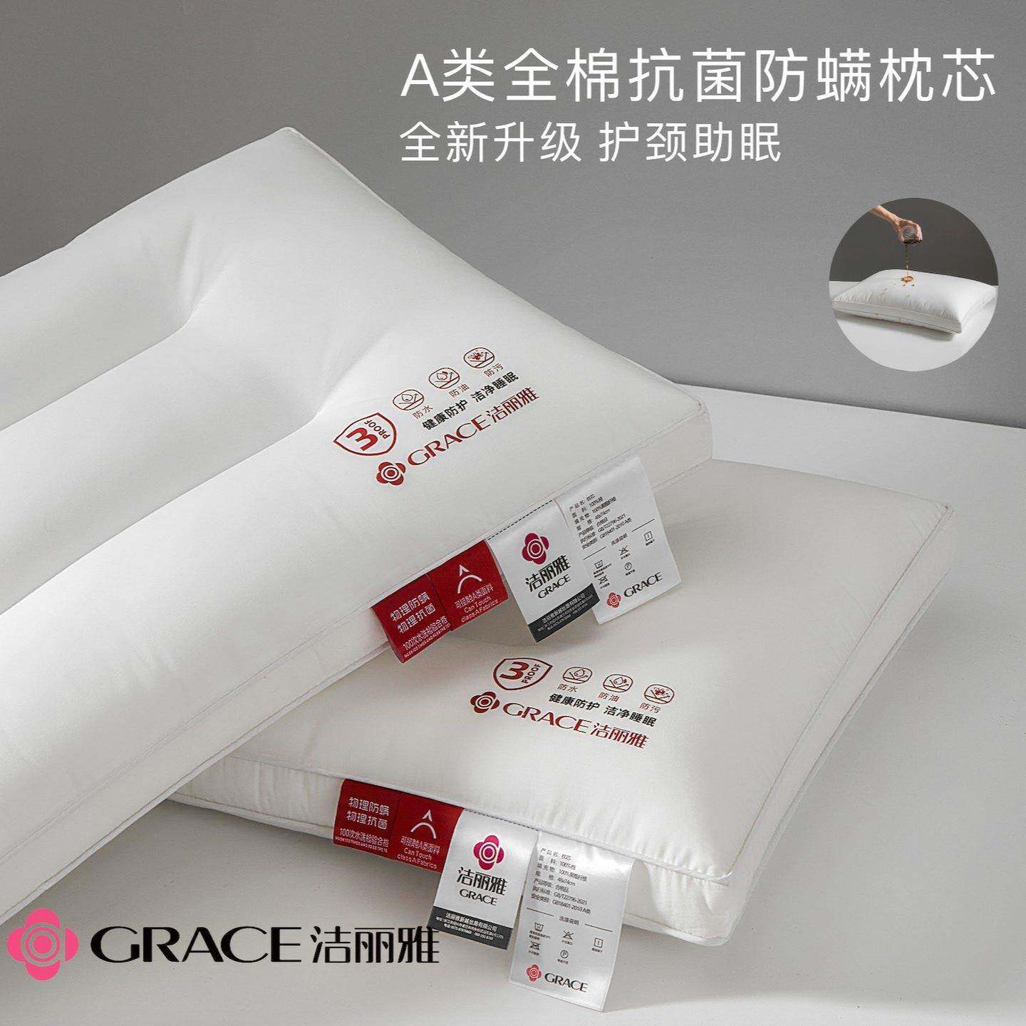 grace/洁丽雅枕芯三防纯棉枕芯A类全棉抗菌防螨枕头护颈深睡助眠