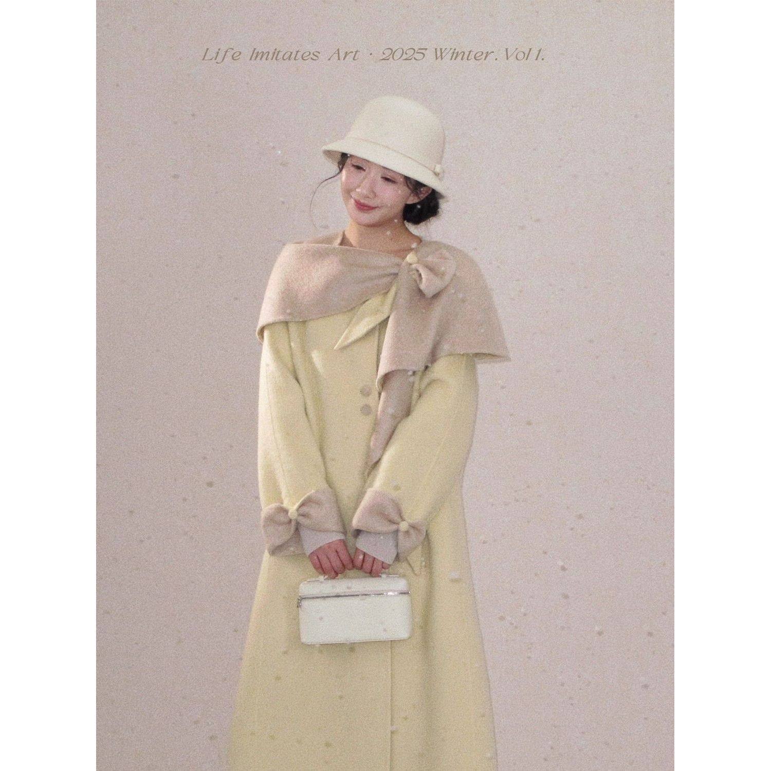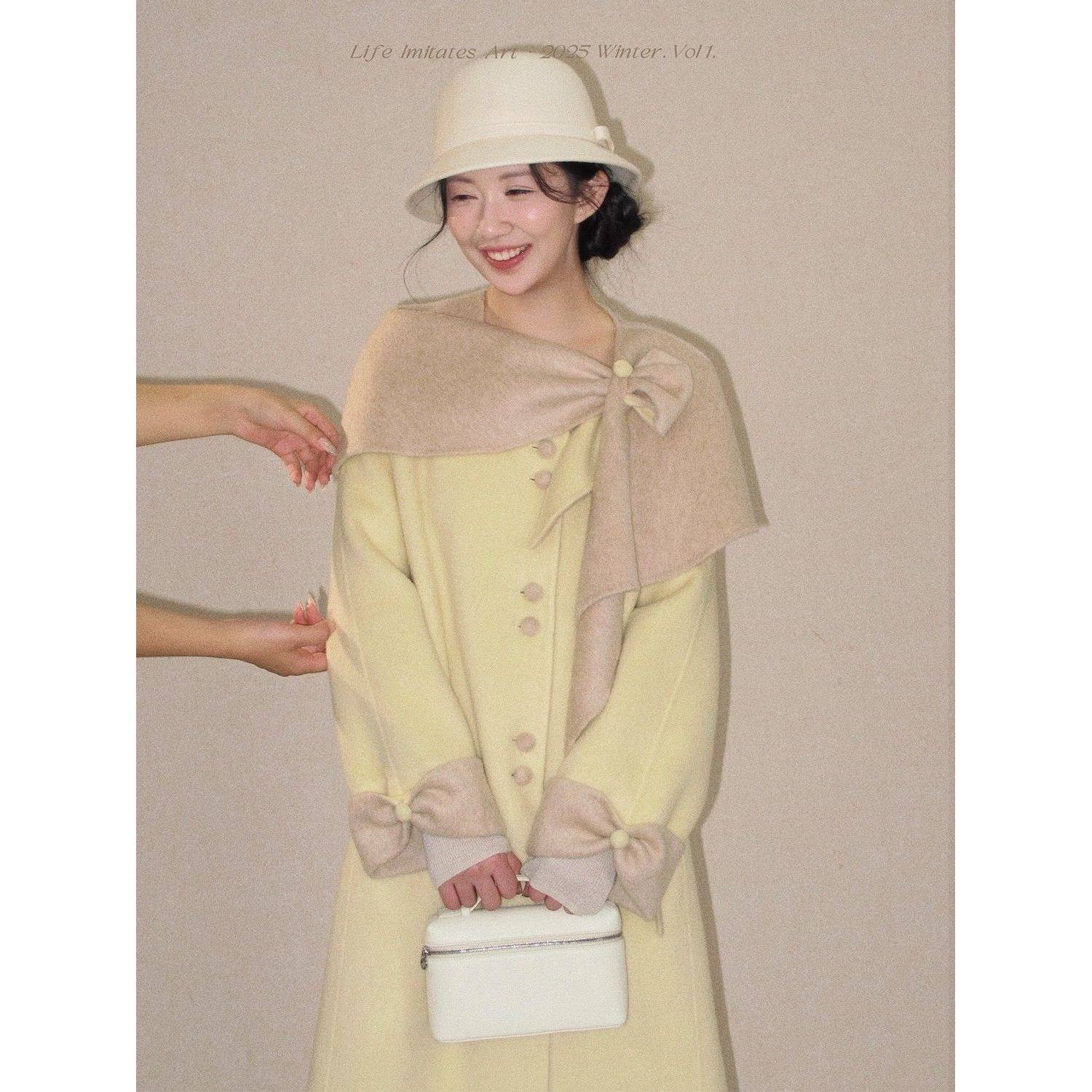 美瑛初雪 甜美少女感披肩撞色斗篷+呢子外套女2025秋冬新款两件套