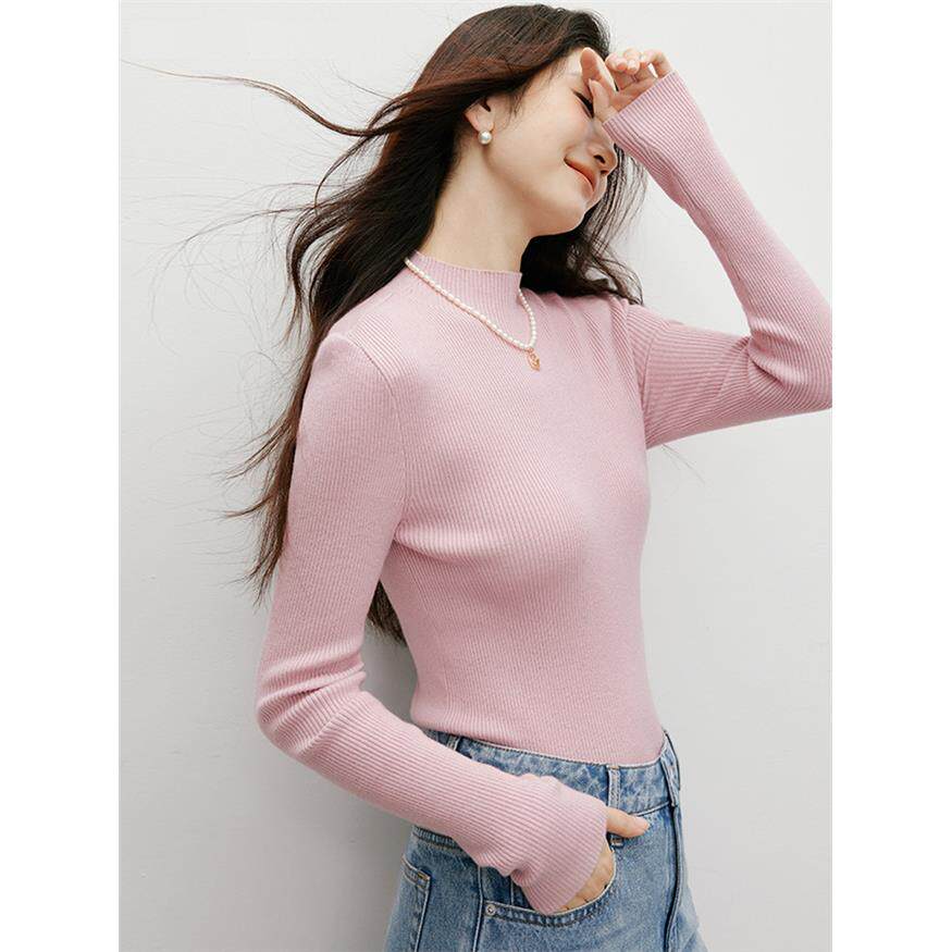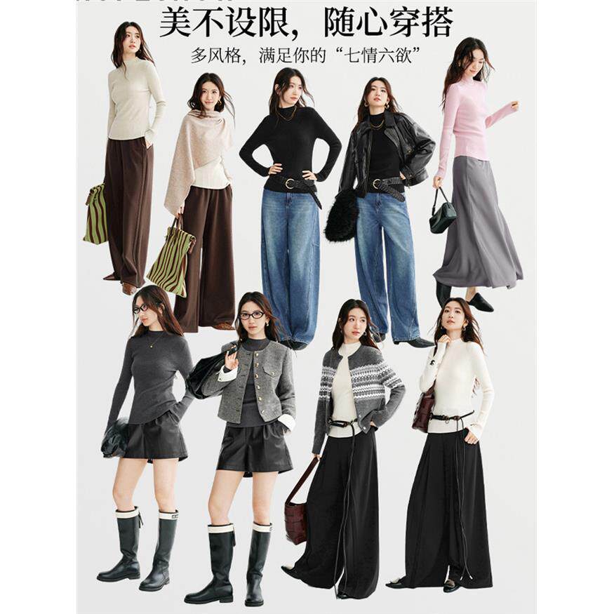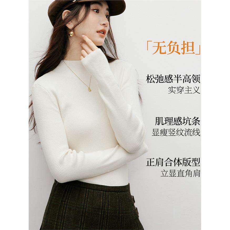 100%纯羊毛衫女显瘦针织衫2025秋冬新款女装打底衫内搭半高领毛衣