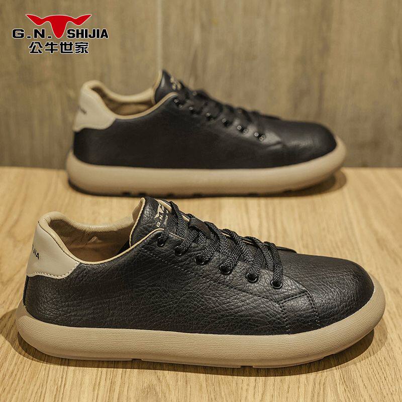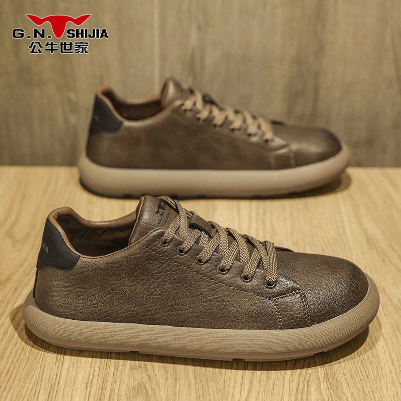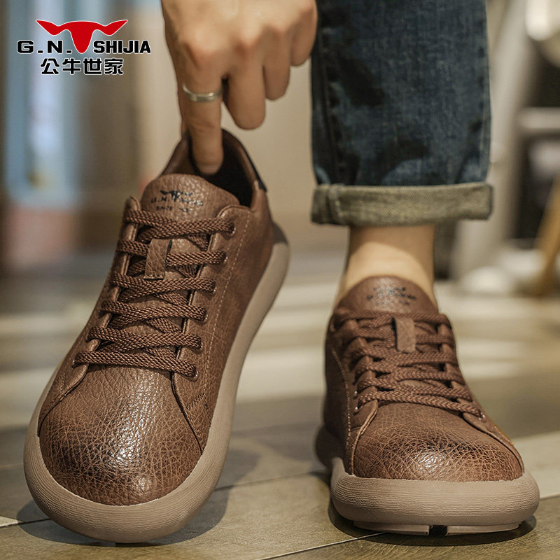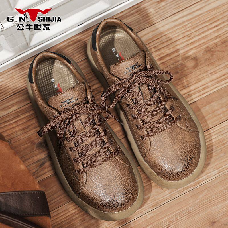 公牛世家德训鞋男鞋秋季圆头舒适休闲板鞋高级感英伦百搭软底皮鞋