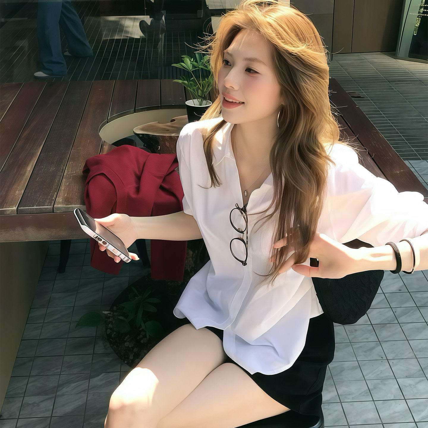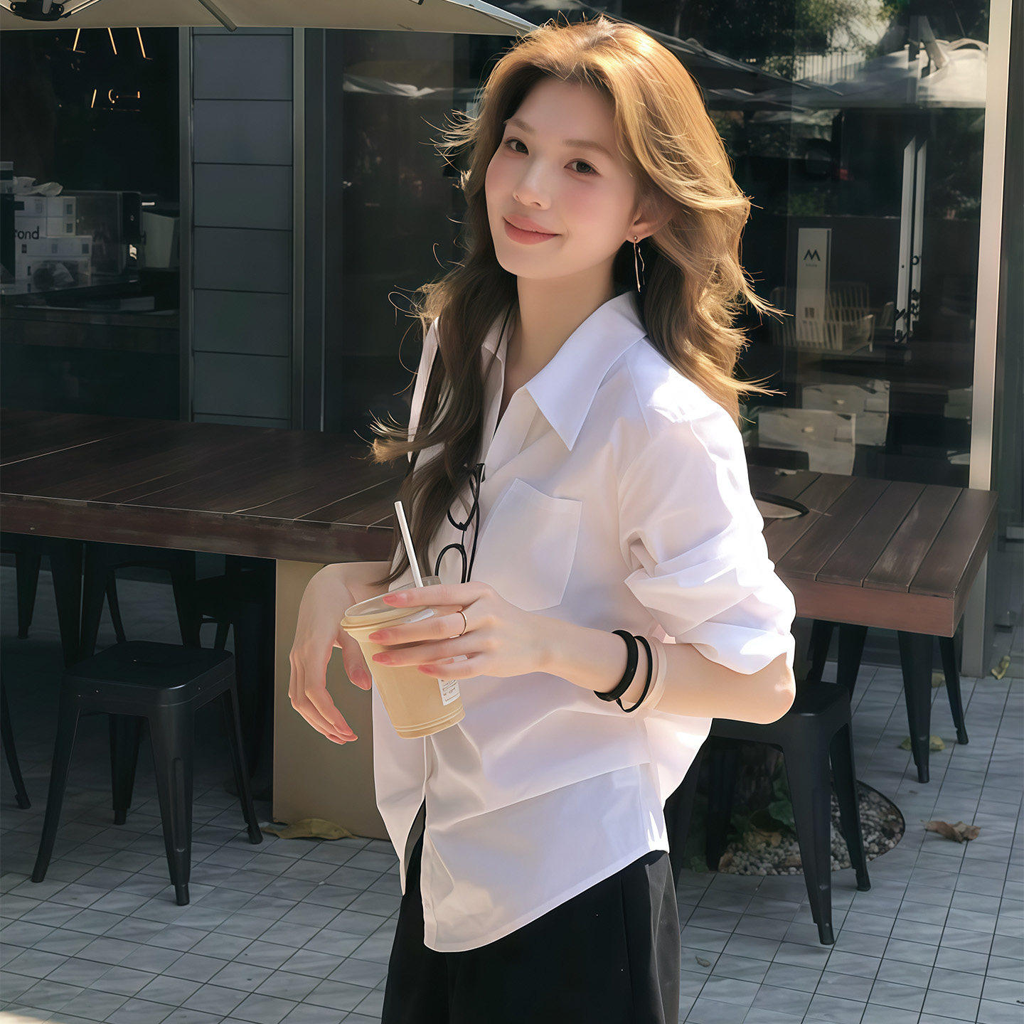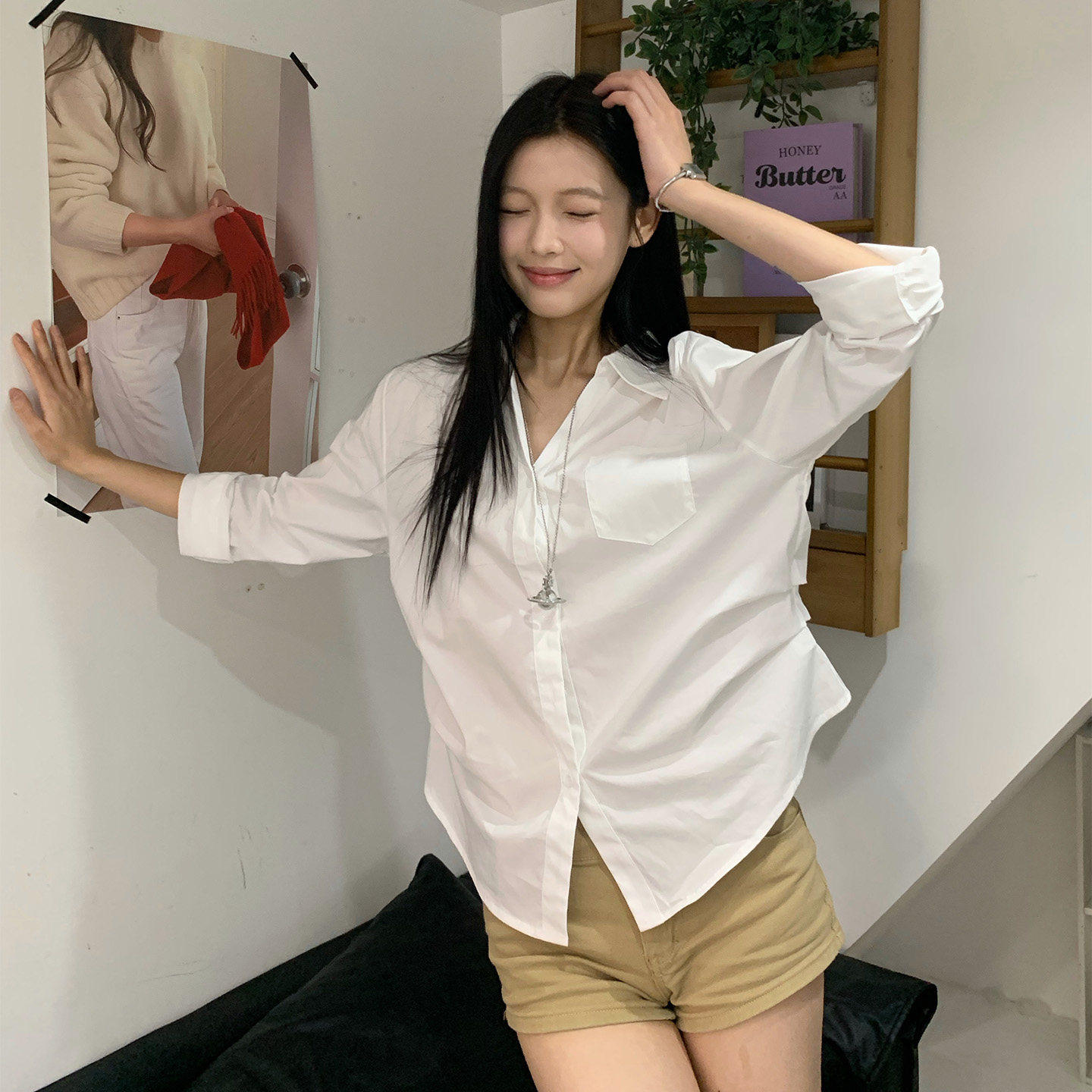 SadSoil 基础款白色打褶衬衫女春夏宽松休闲长袖氛围感上衣衬衣女