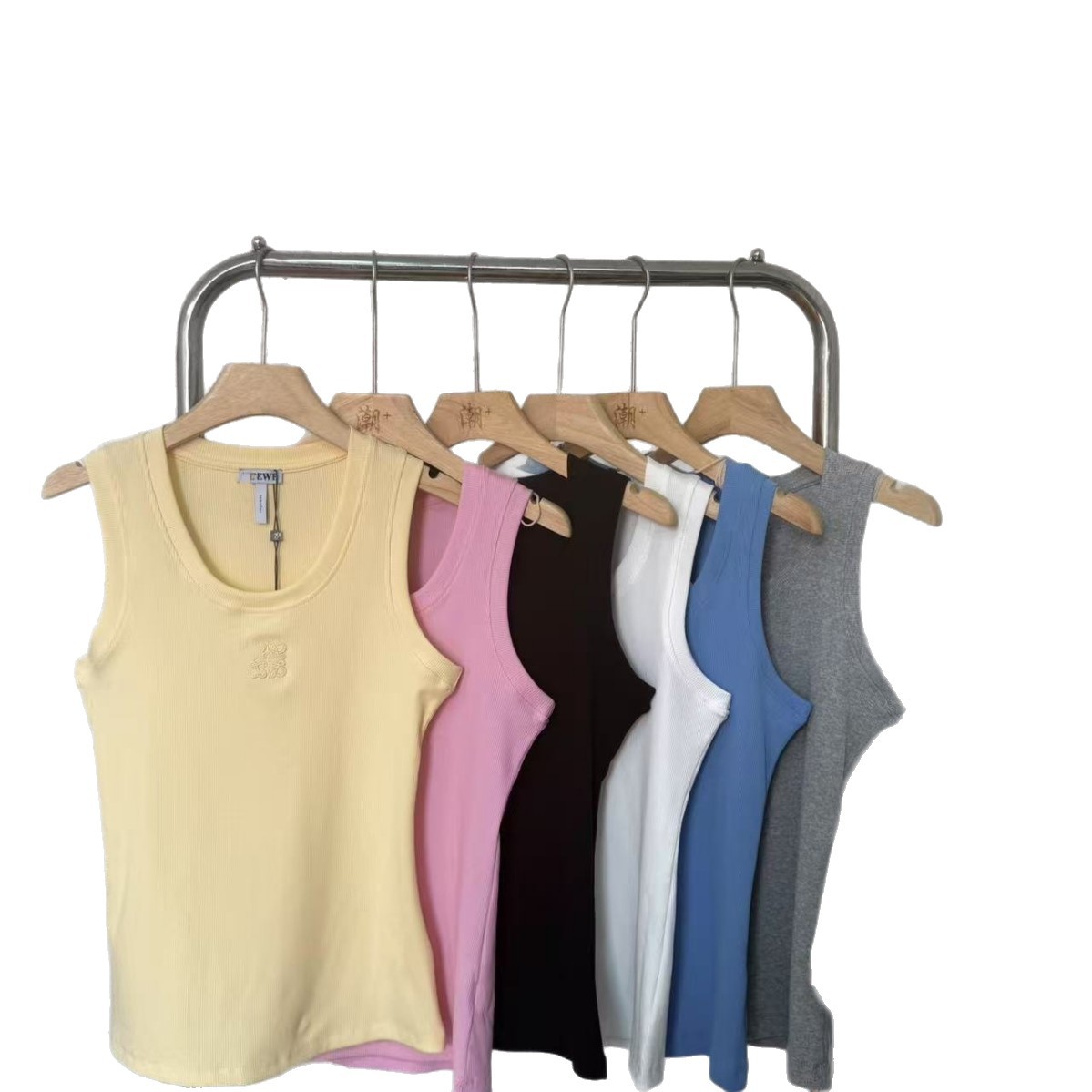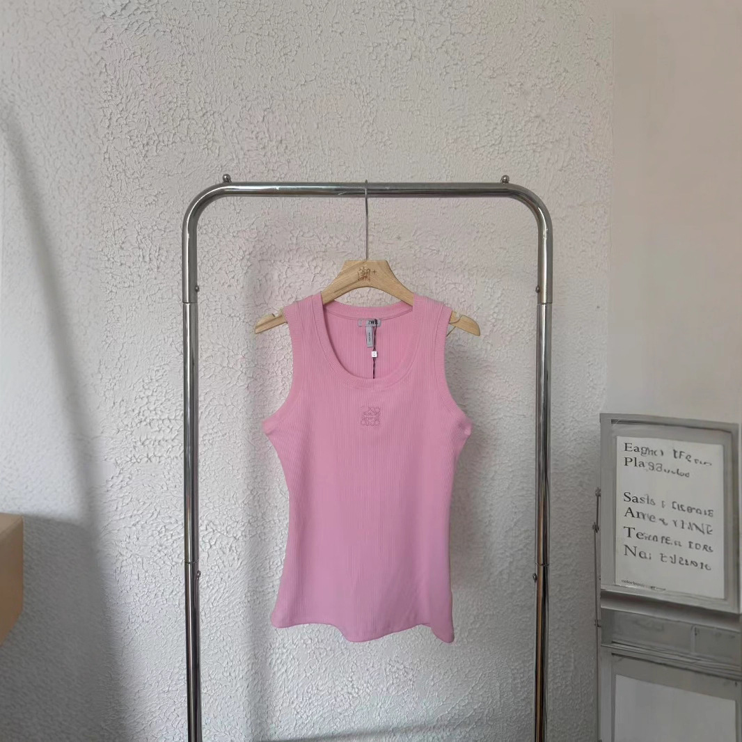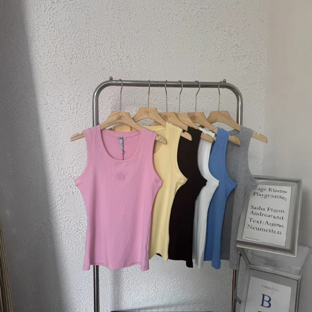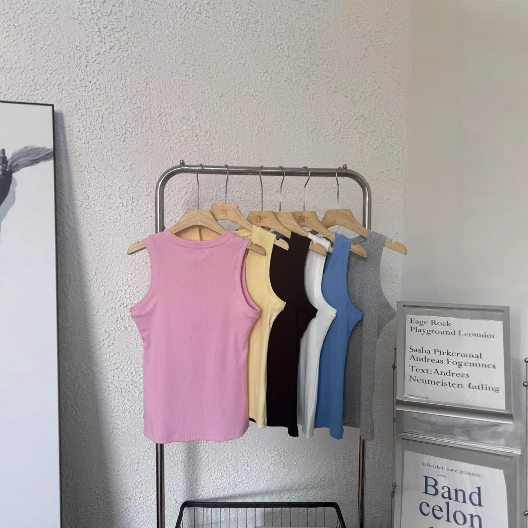 罗+新款胸前字母刺绣LOGO休闲百搭圆领无袖吊带修身背心T恤女