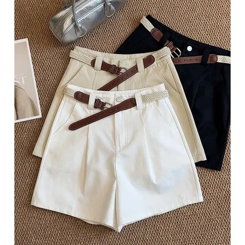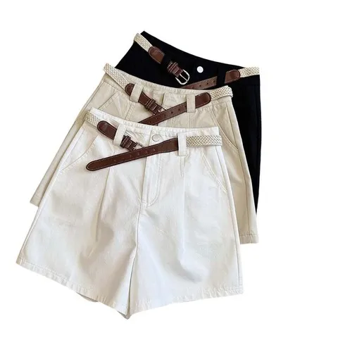 夏季休闲送腰带高腰骑士裤显瘦棉气质百搭~阔腿裤新款短裤推荐