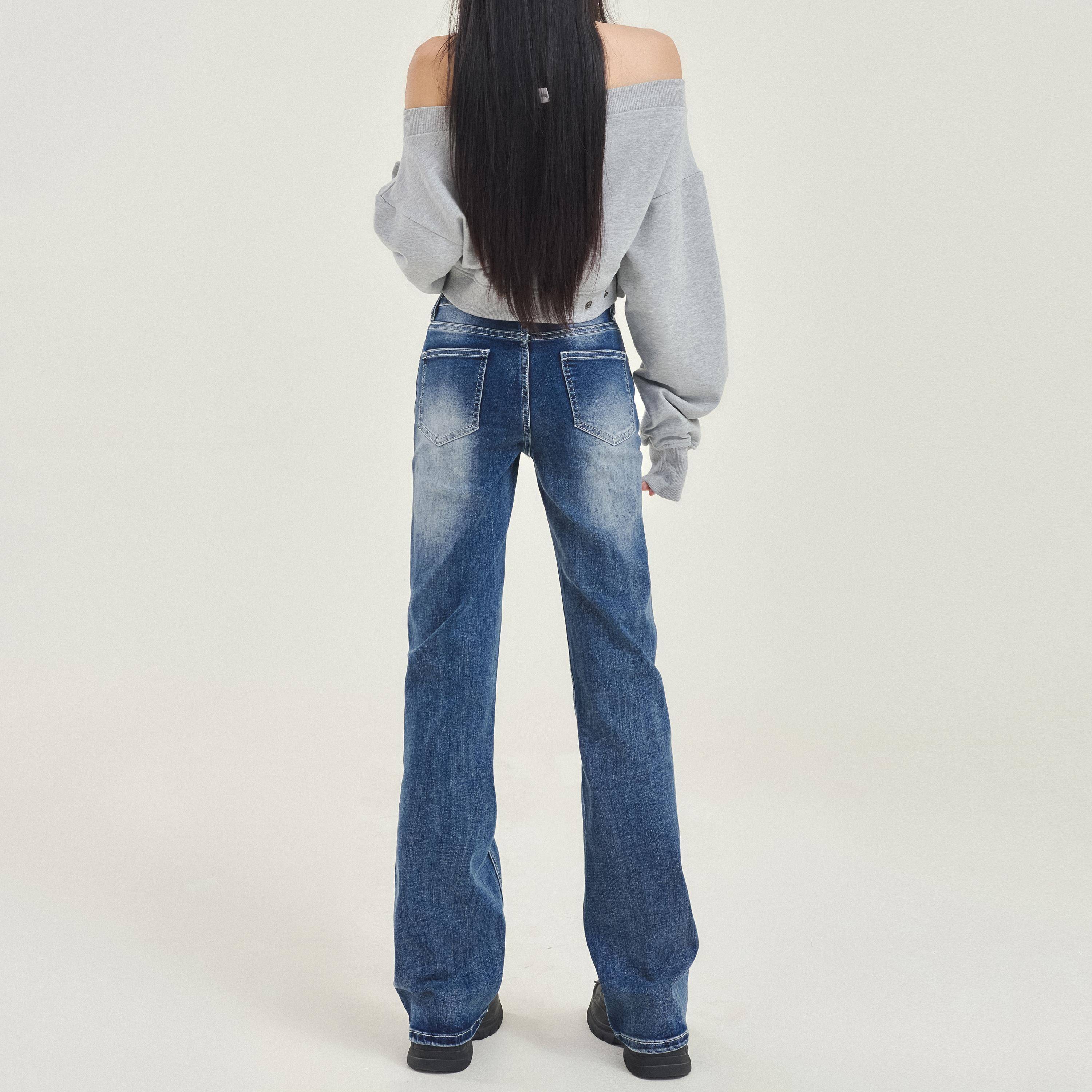VMZM2025年春秋新款复古水洗蓝色直筒牛仔裤女高腰显瘦垂感拖地裤