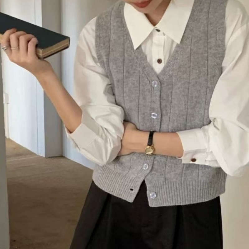 日系复古温柔麻花针织马甲开衫女秋气质休闲外搭叠穿毛衣背心