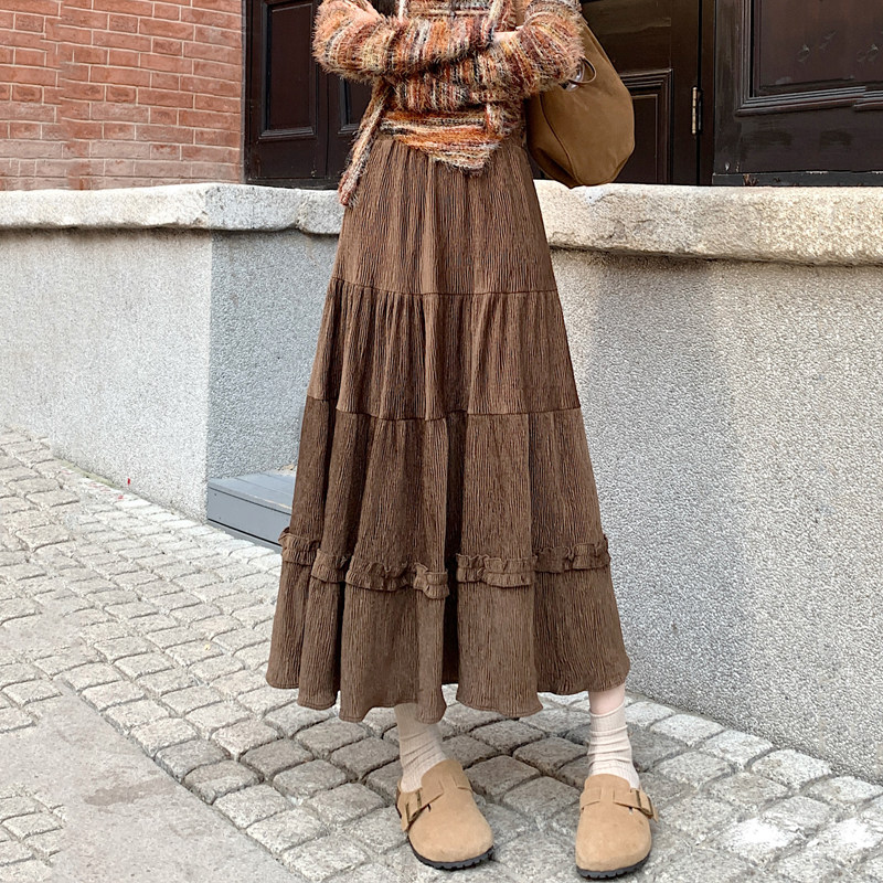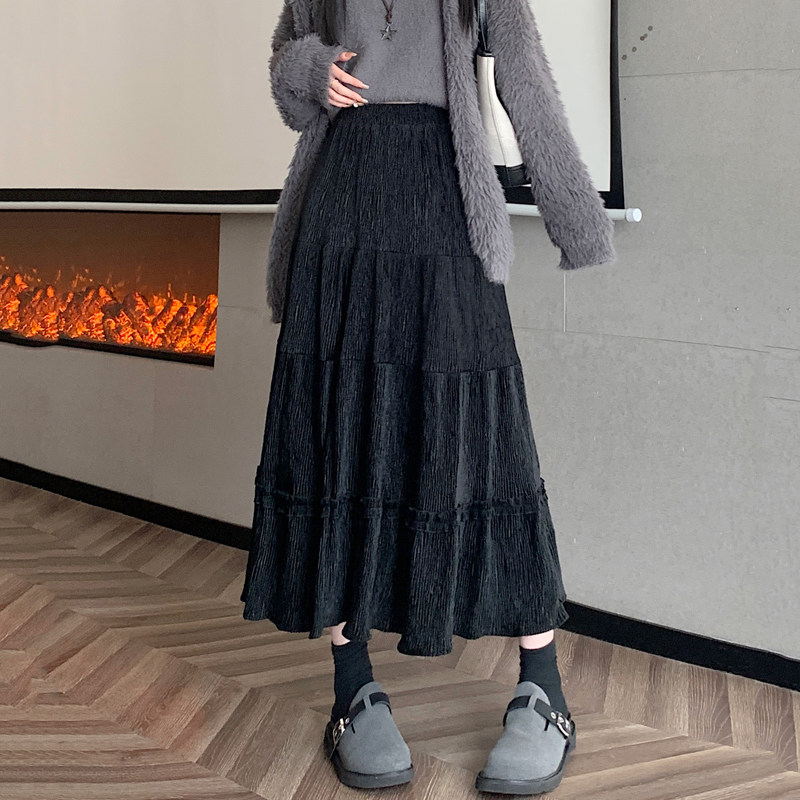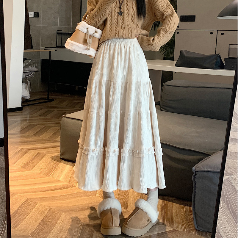 米白色半身裙伞裙女2025新款秋冬丝绒半裙杏色裙子垂感a字蛋糕裙