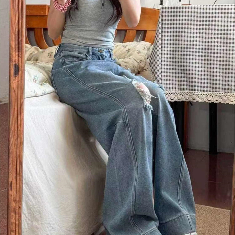 首页> 女装> 美式破洞牛仔裤女夏季新款大码胖mm宽松显瘦梨形身材高腰阔腿裤子
