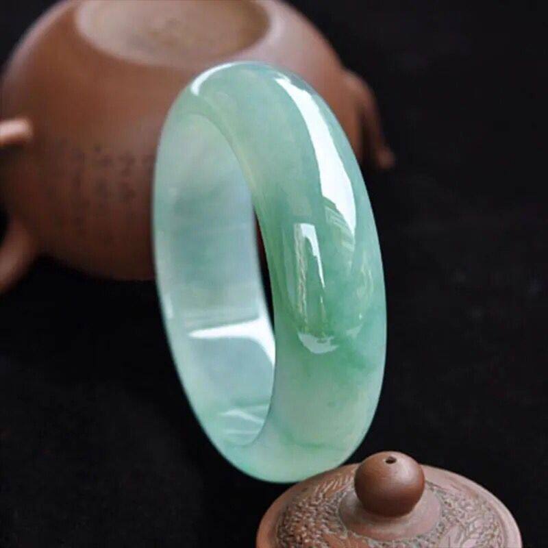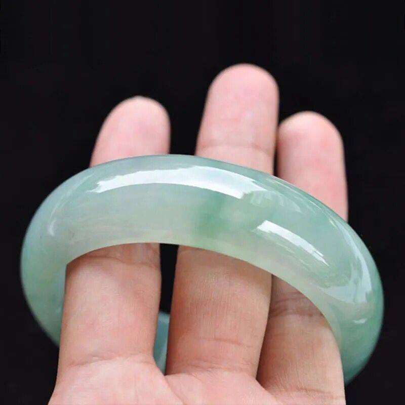 缅甸天然翡翠手镯老坑冰种浅绿油青加宽飘花玉石镯子贵妃女款吊