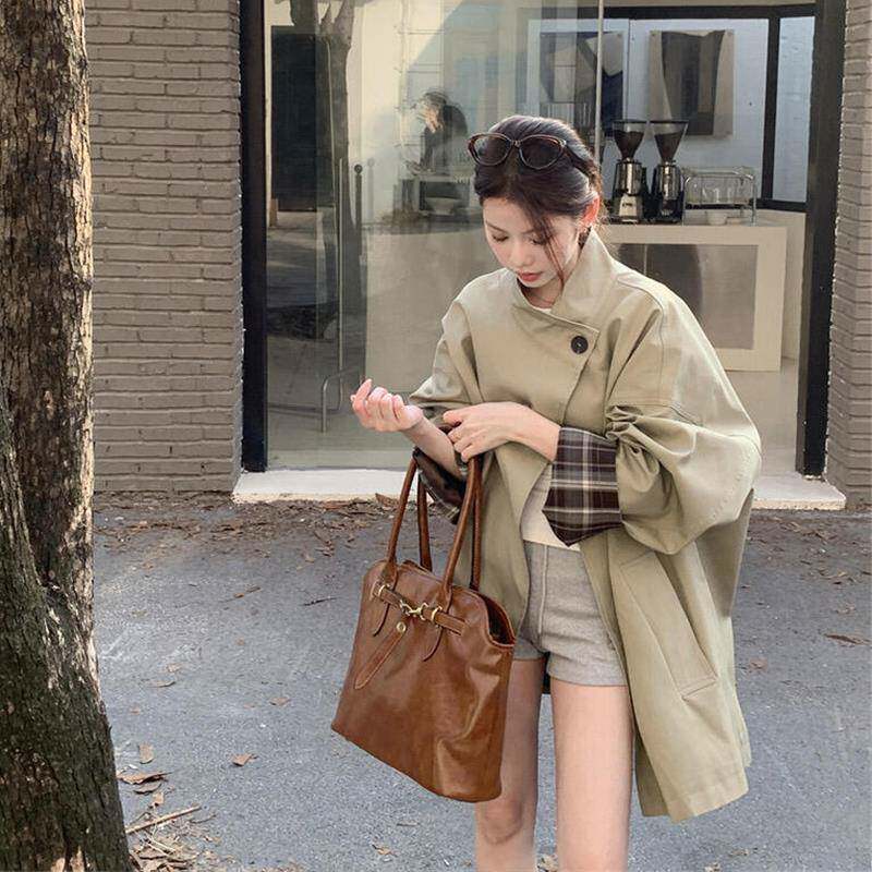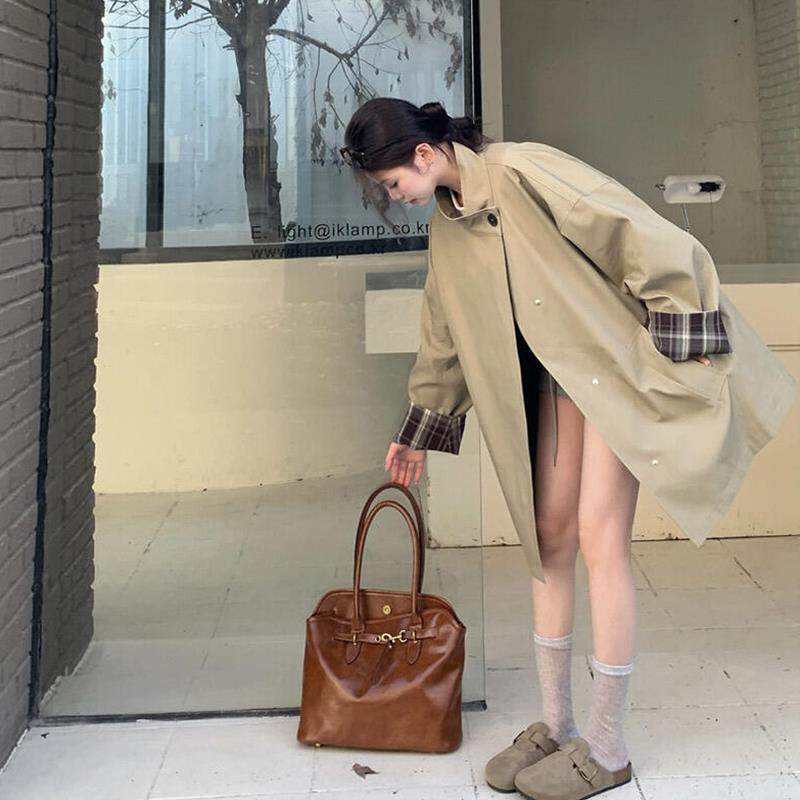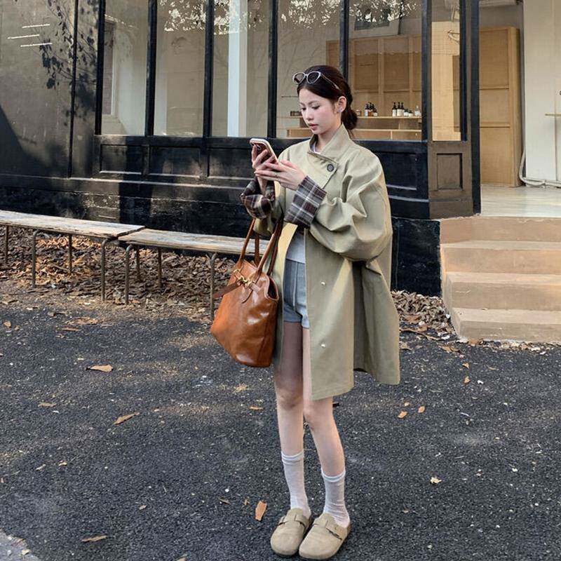 高级感拼接撞色风衣外套女2025春秋新款韩系宽松小个子英伦风大衣