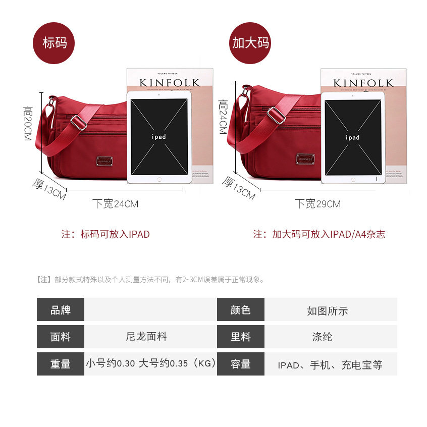 时尚单肩包女简约尼龙布女包大容量斜挎包轻奢高级感中年妈咪包包