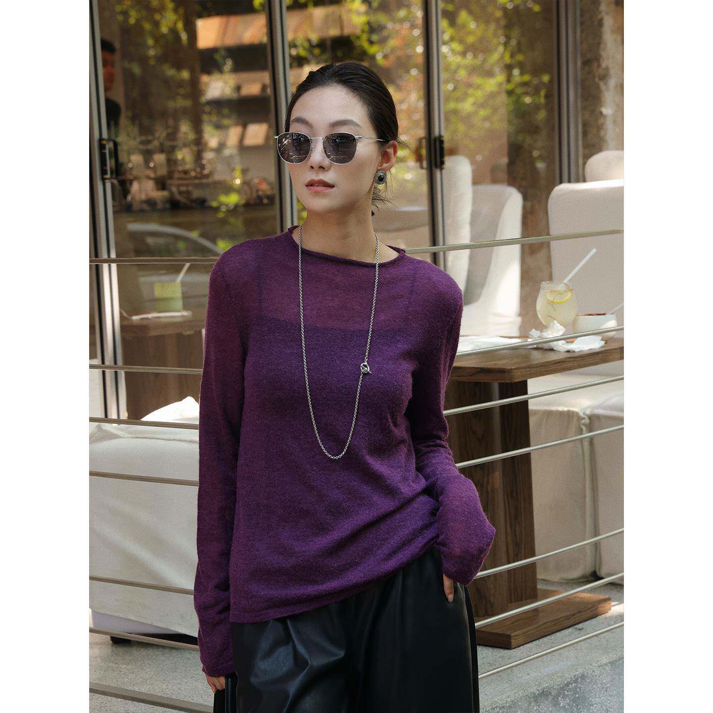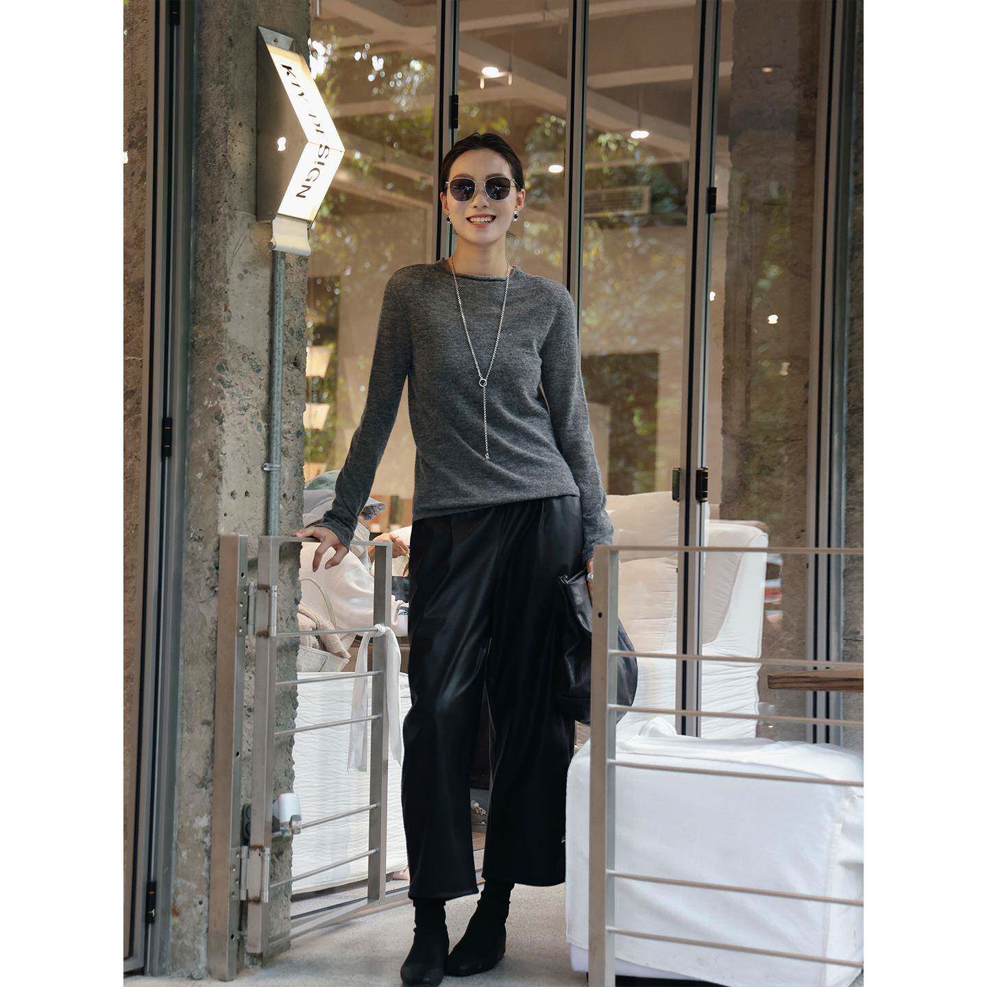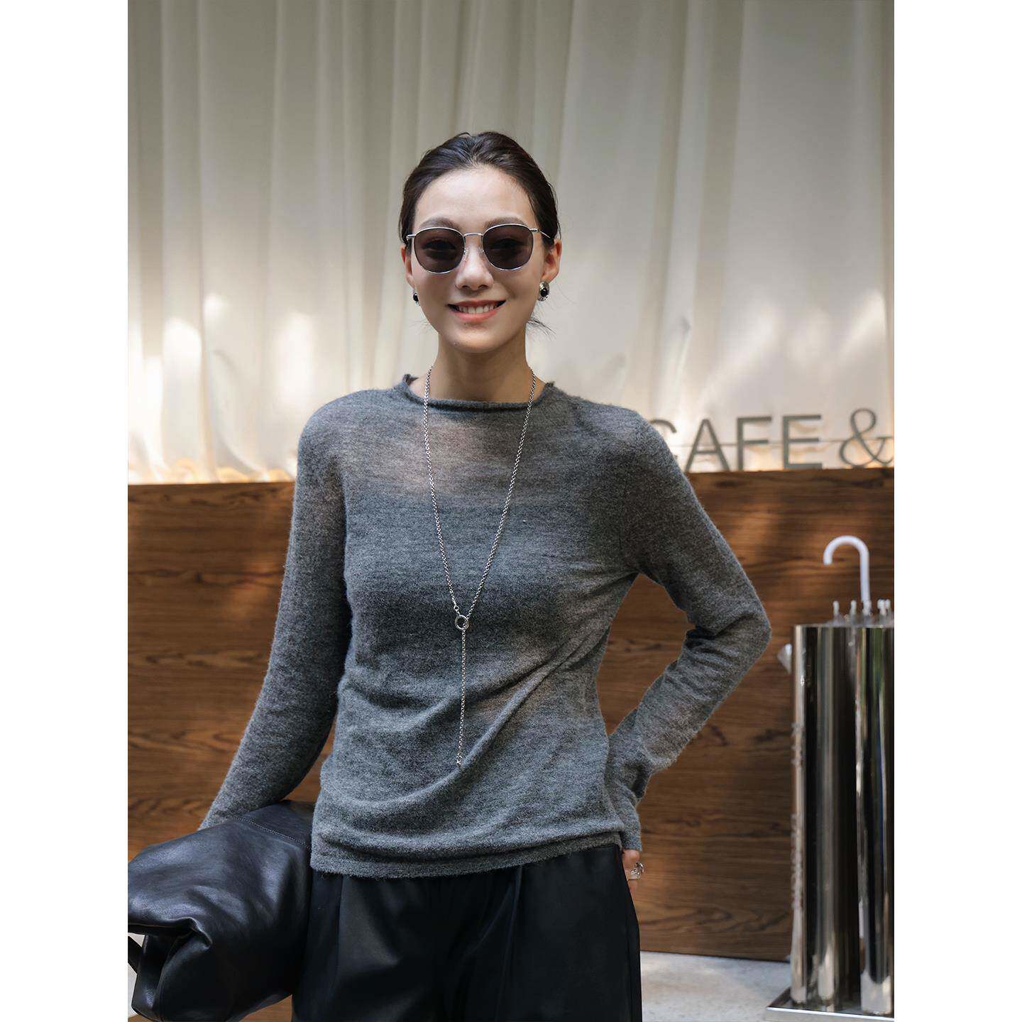 周粥洋气时尚打底衫秋冬圆领内搭针织毛衣女装2025年新款羊毛上衣