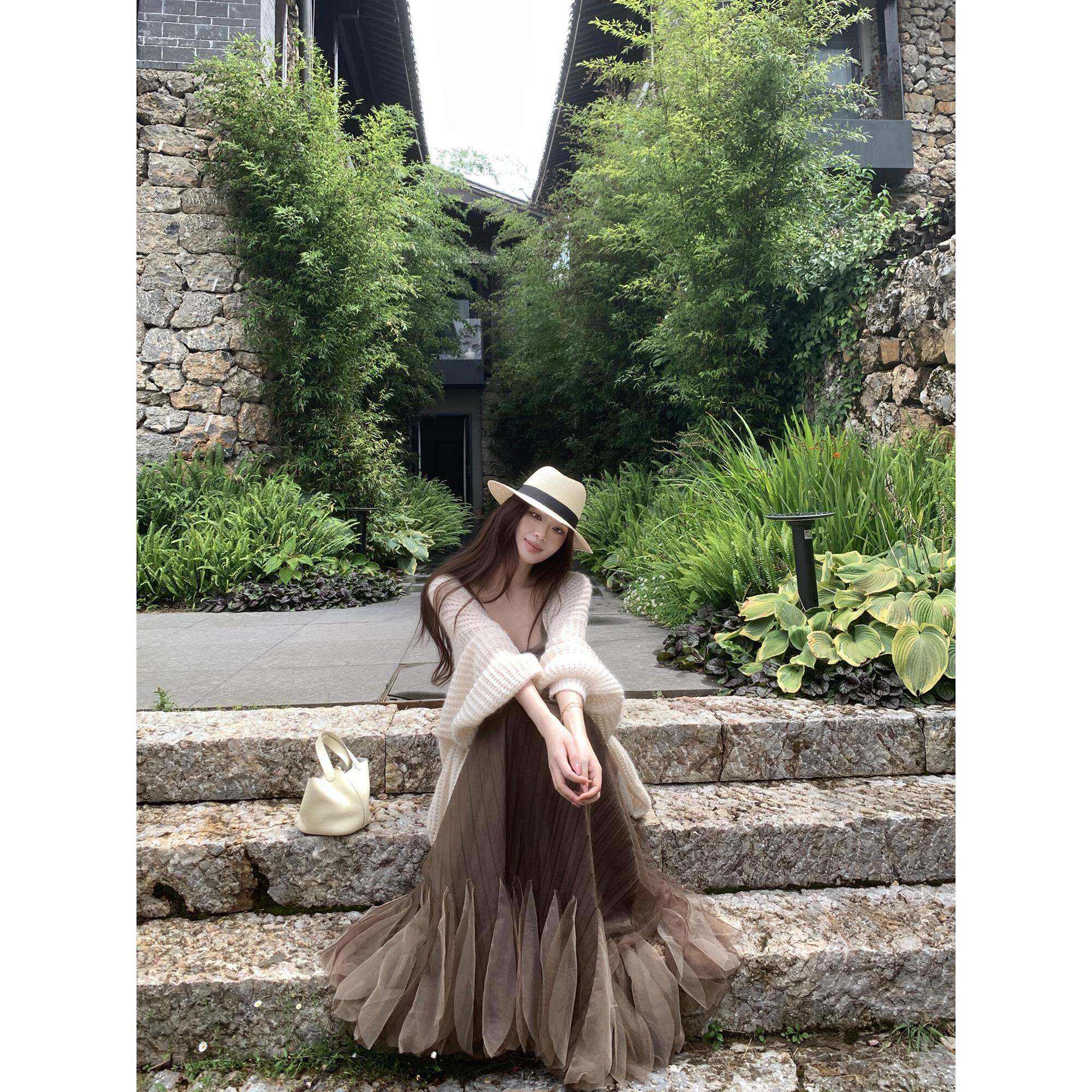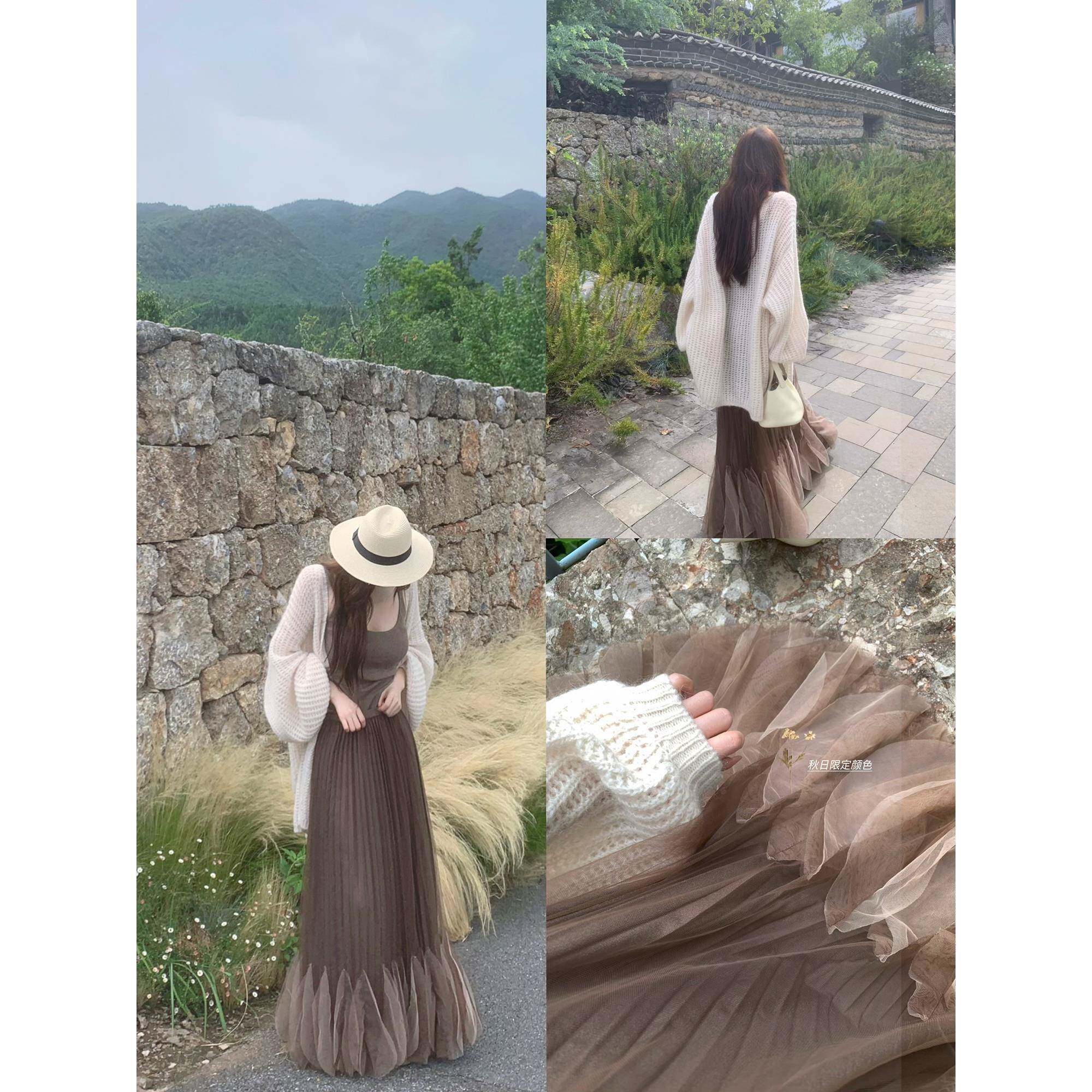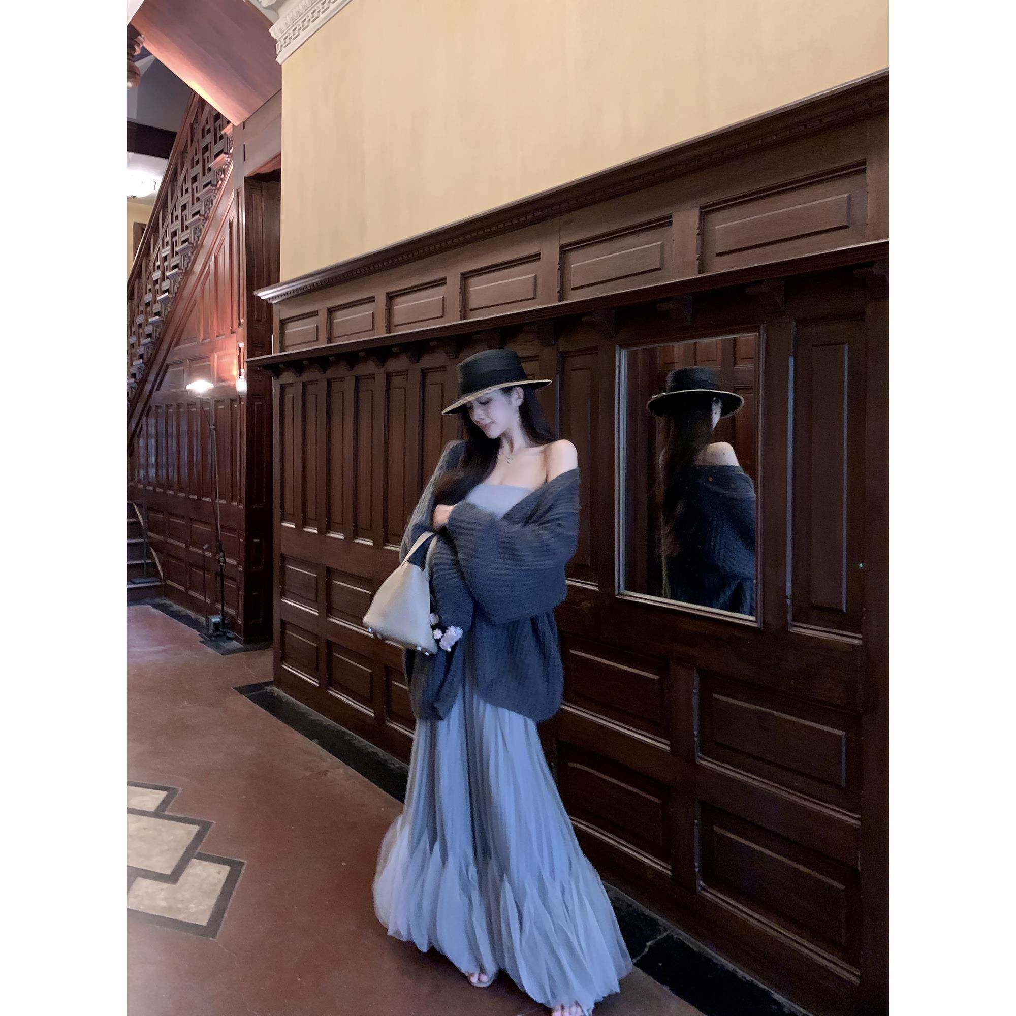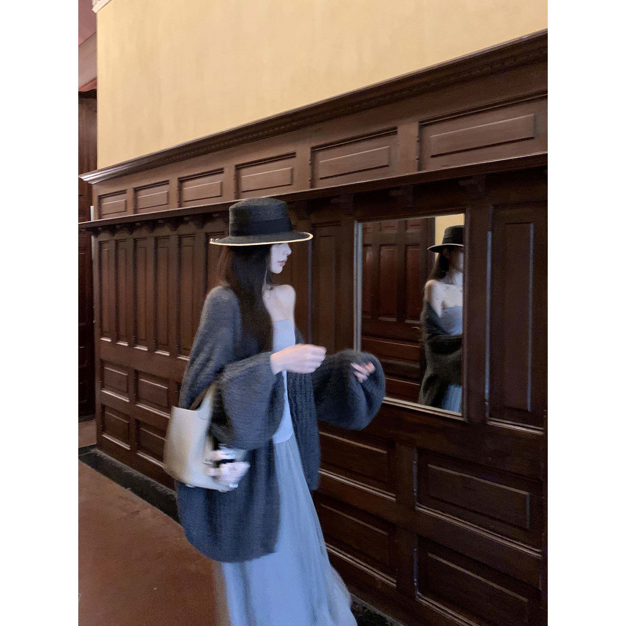夏曦小曦灯笼袖开衫秋冬女式纯色马海毛针织粗针大外衣