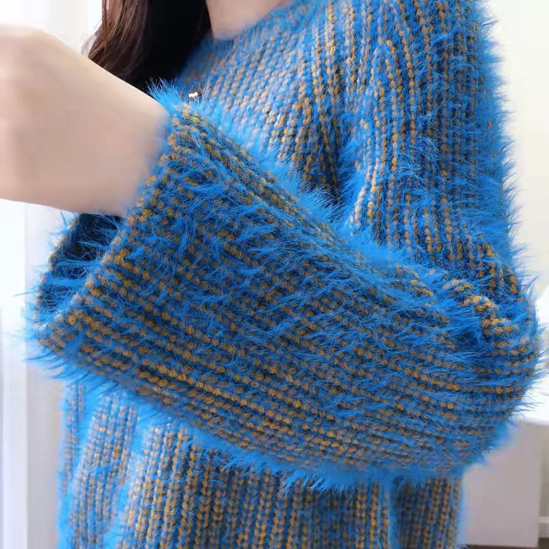 爆款水貂绒毛衣女宽松短款慵懒风长袖针织上衣外穿洋气打底衫