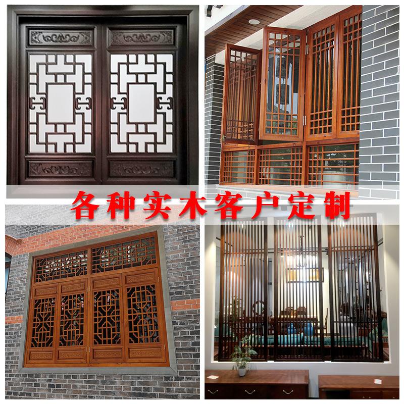 新中式实木格栅屏风隔断花窗中式玄关电视背景墙仿古门窗木窗装修